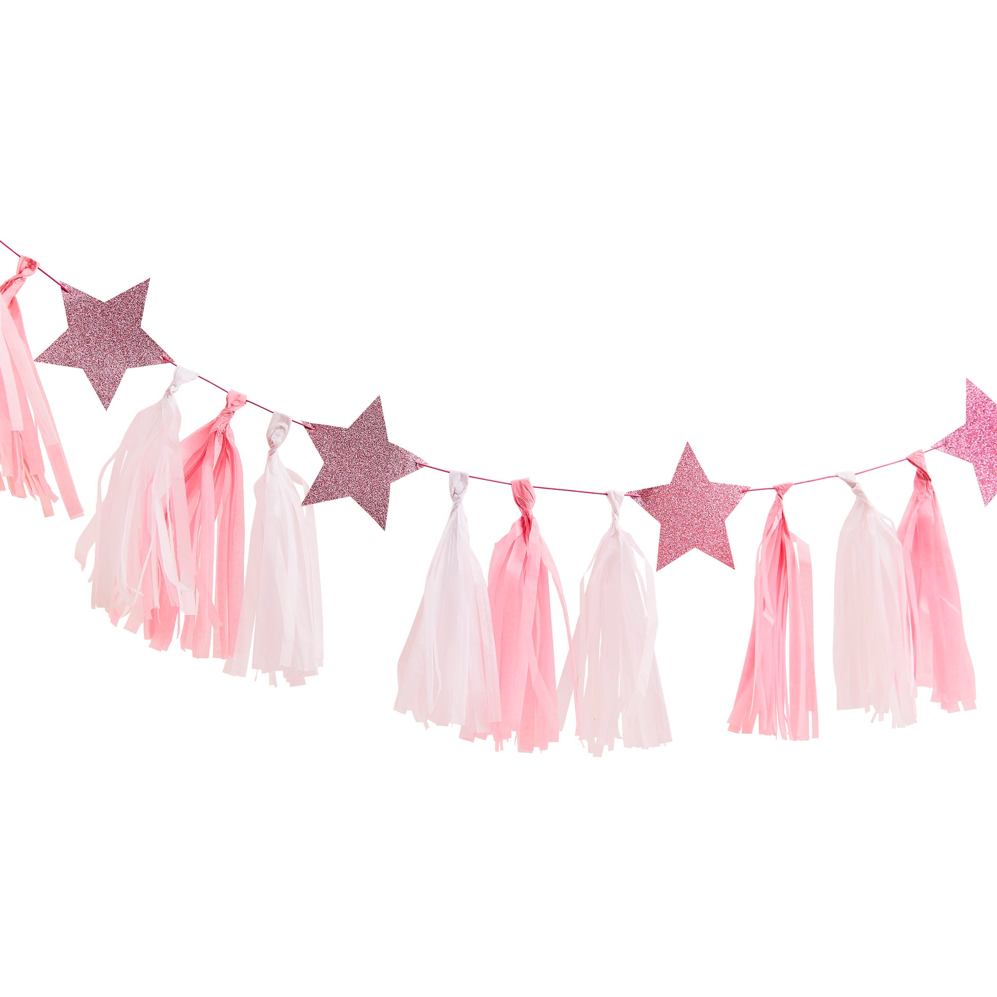 Pack Contains 1 garland set with 15 tassels pink and white and 4 stars measures 2m