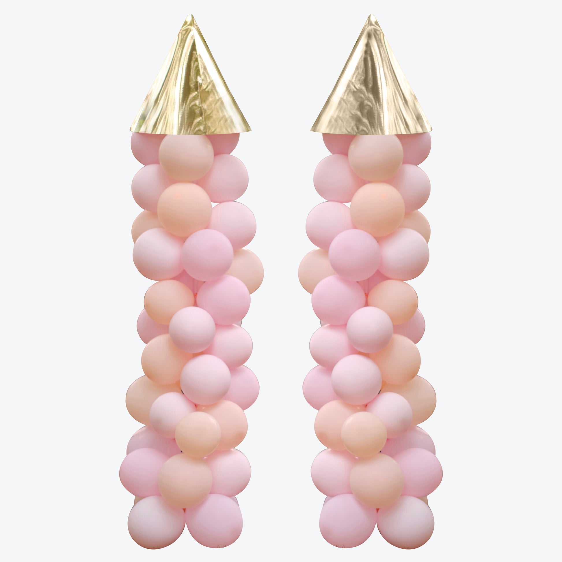 With gorgeous shades of pink balloons and gold shimmering turrets, this unforgettable balloon arch is a must-have for your princess party.