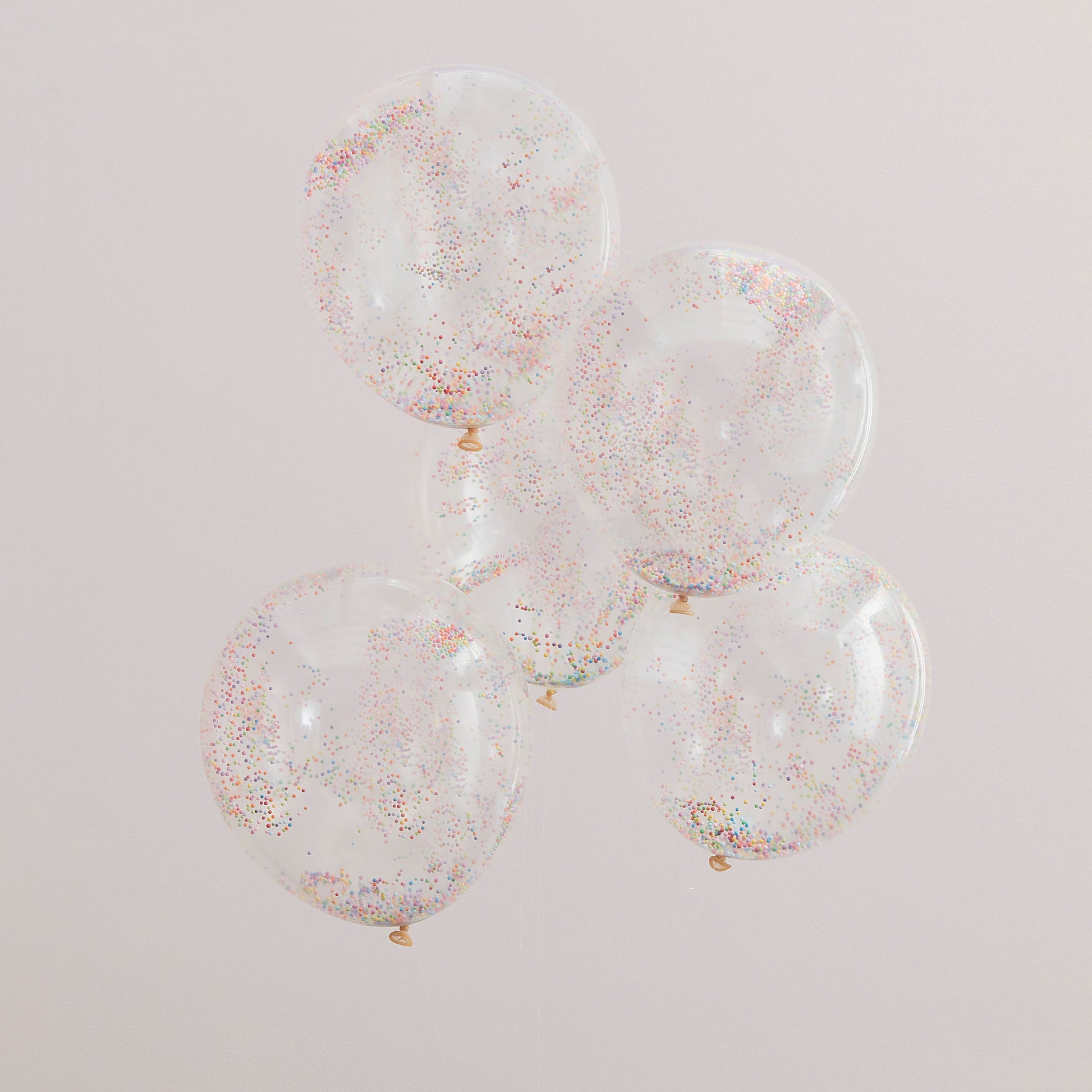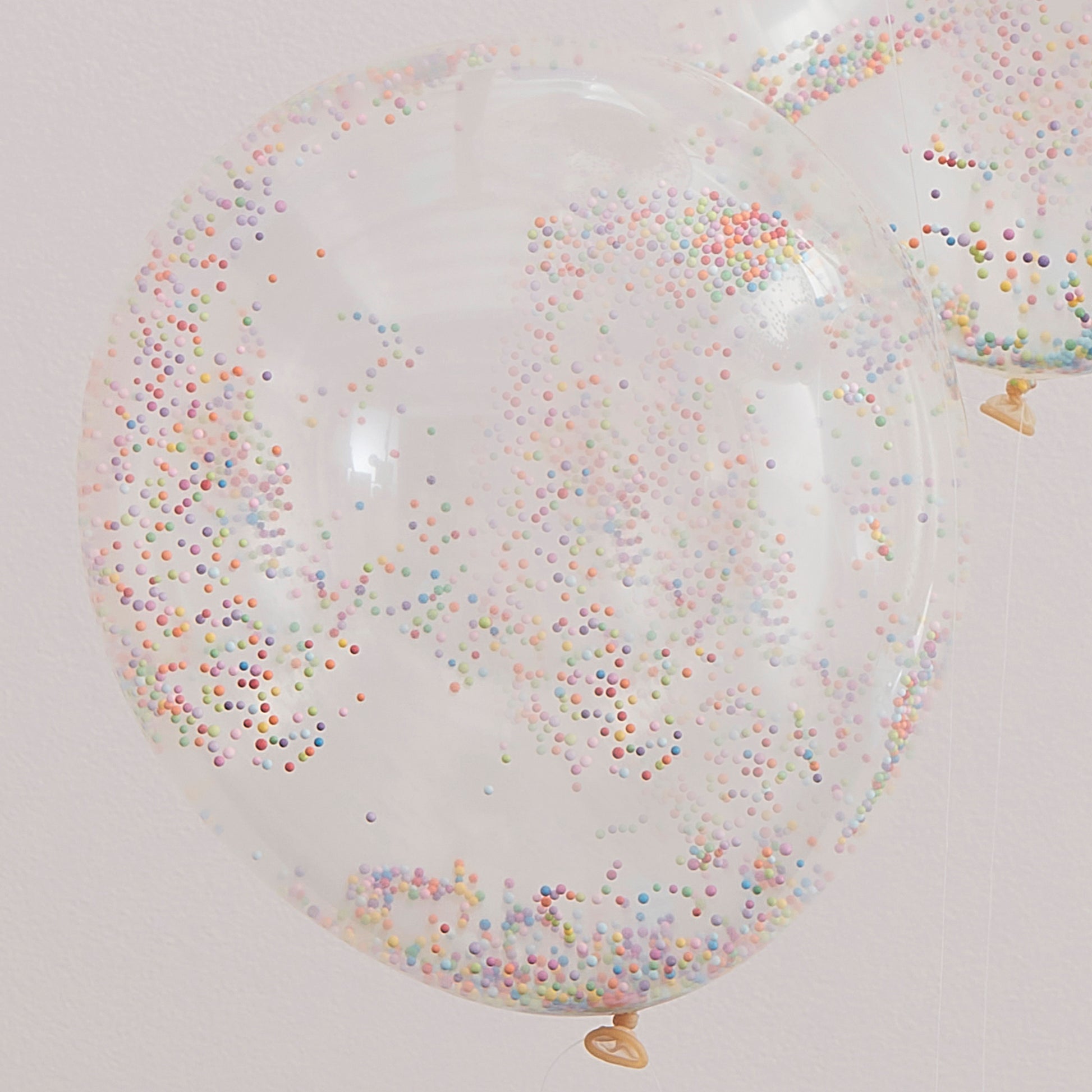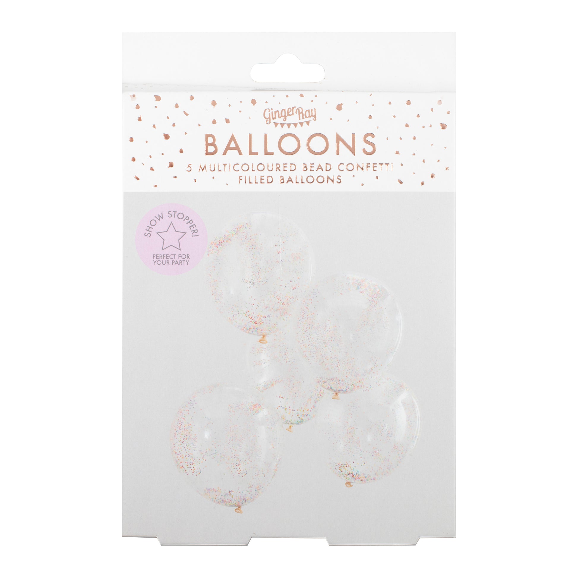 5 x 12 inch Bright Rainbow Foam Bead Confetti Filled Balloons