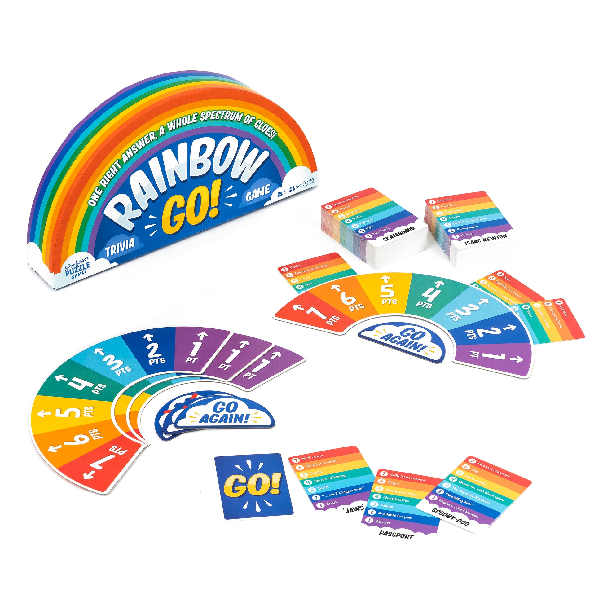 In this fast-paced trivia game, each question has seven clues but only one right answer. The clues get easier, but the fewer you use, the more points you win! Any player can answer any question, so it?s a race to react and be the first to slap the ?Go!? card. Will you ?Go!? for a high score, but guess too early and risk crashing out of the round? Or will you ?Go!? steady and use more clues but cunningly capture points? It?s time to show your true colours!