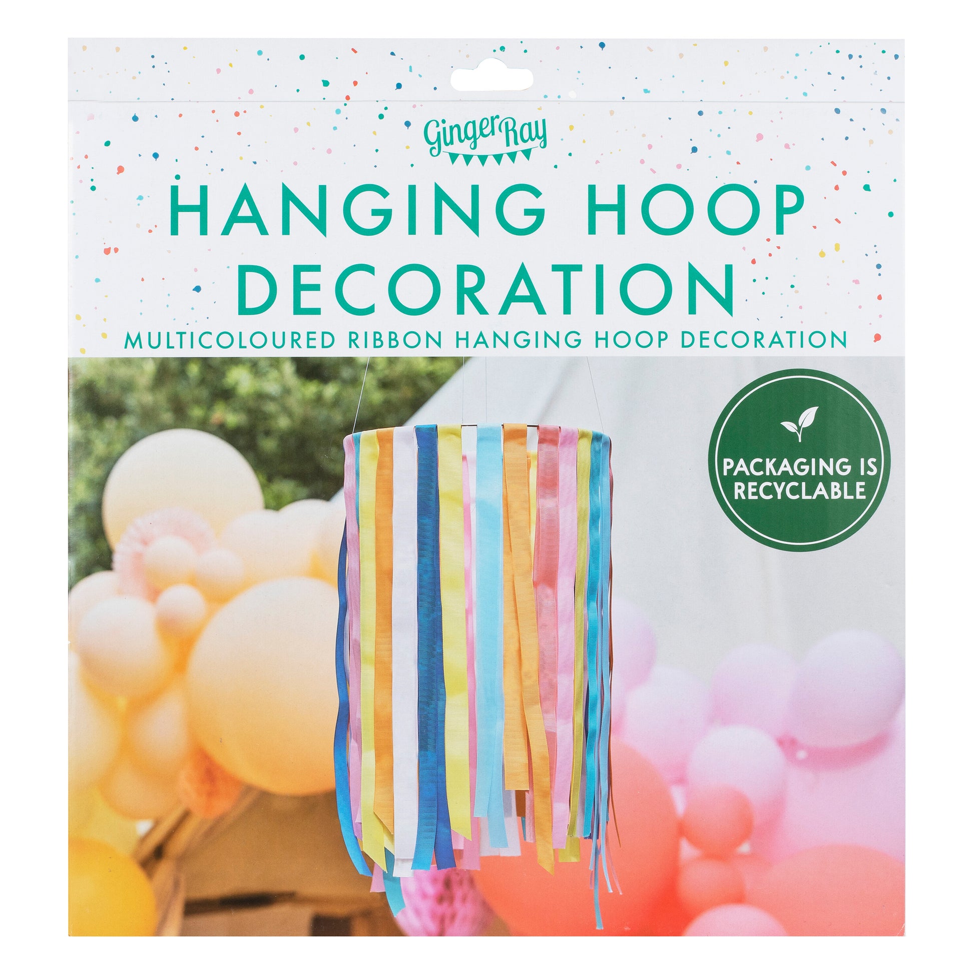Add an explosion of colour to your celebrations with this hanging ribbon hoop decoration. This is sure to give the ultimate wow factor to your party decorations.