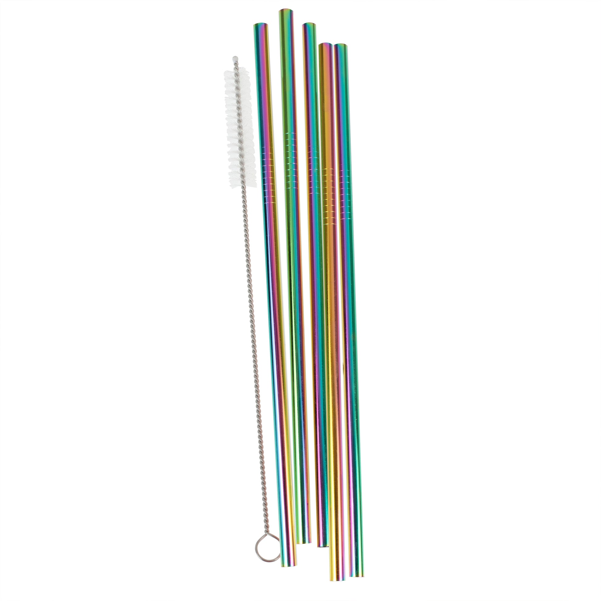 Each pack contains 5 rainbow straws and a brush for cleaning. Straws measure 21.5cm (H) x 0.6cm(W)