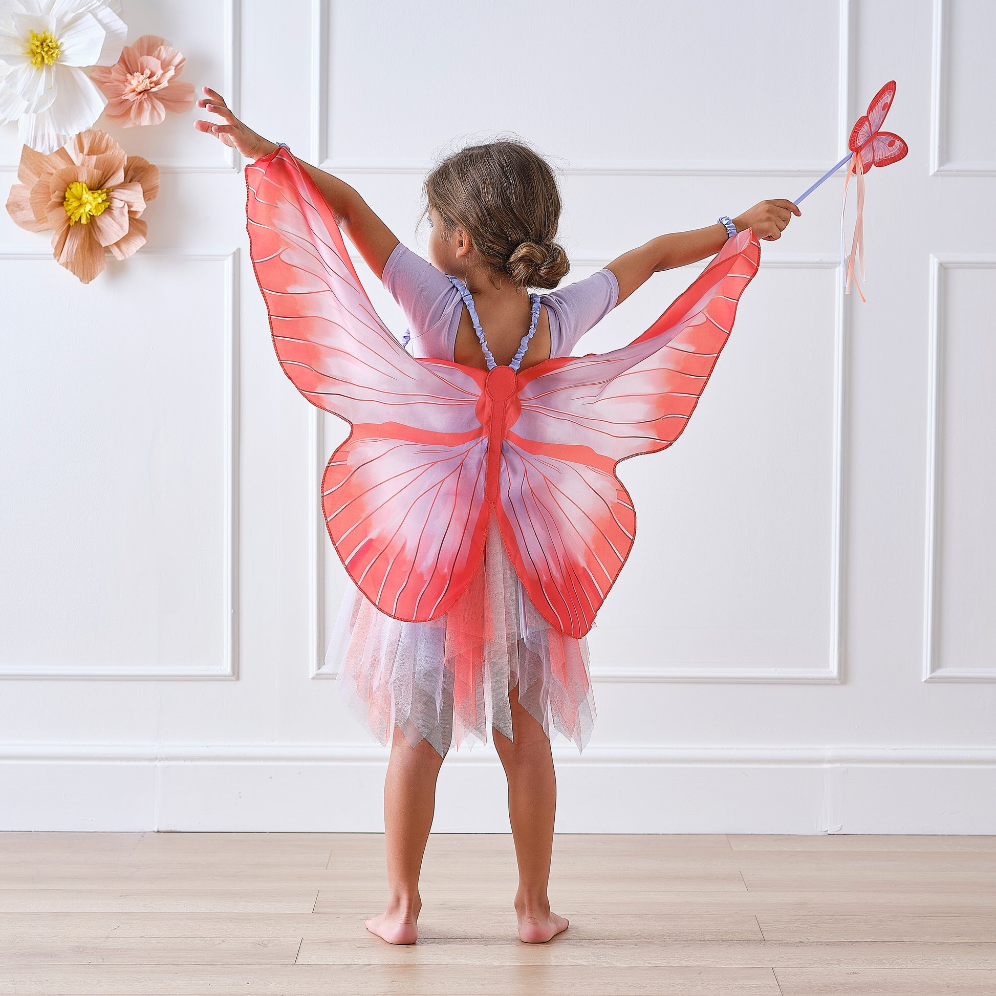 Turn them into a beautiful butterfly with this red and lilac butterfly costume.