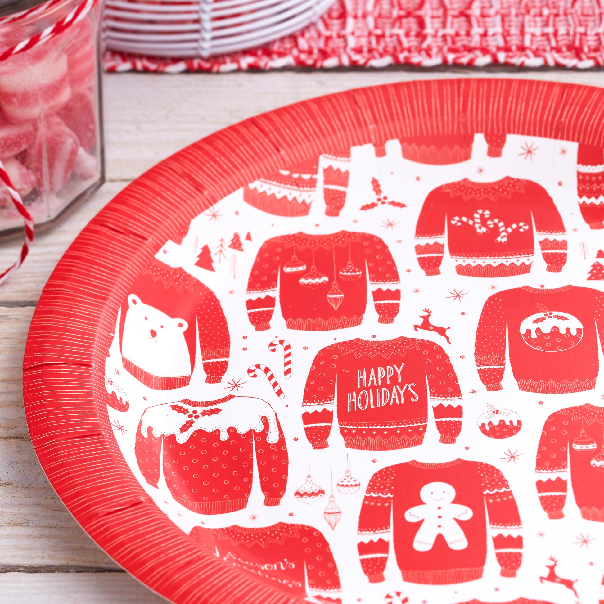 Red and White Festive Jumper Paper Plates - Cosy Christmas