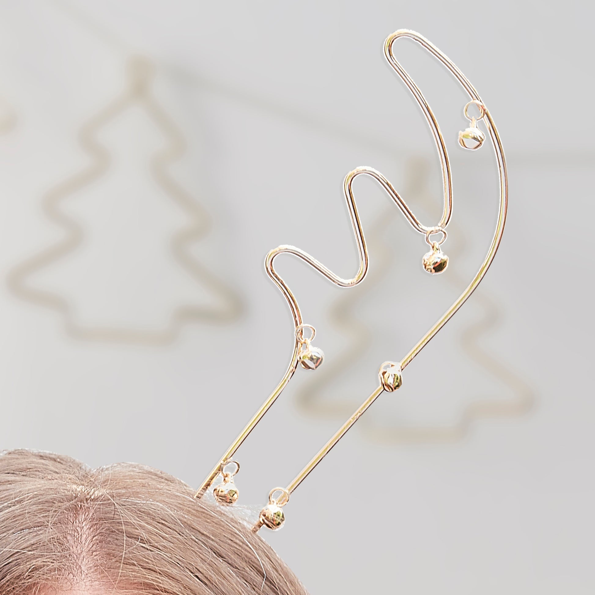The gold metal headband with festive antler and bells design will shine under Christmas lights and be the perfect finishing touch to your Christmas outfit.