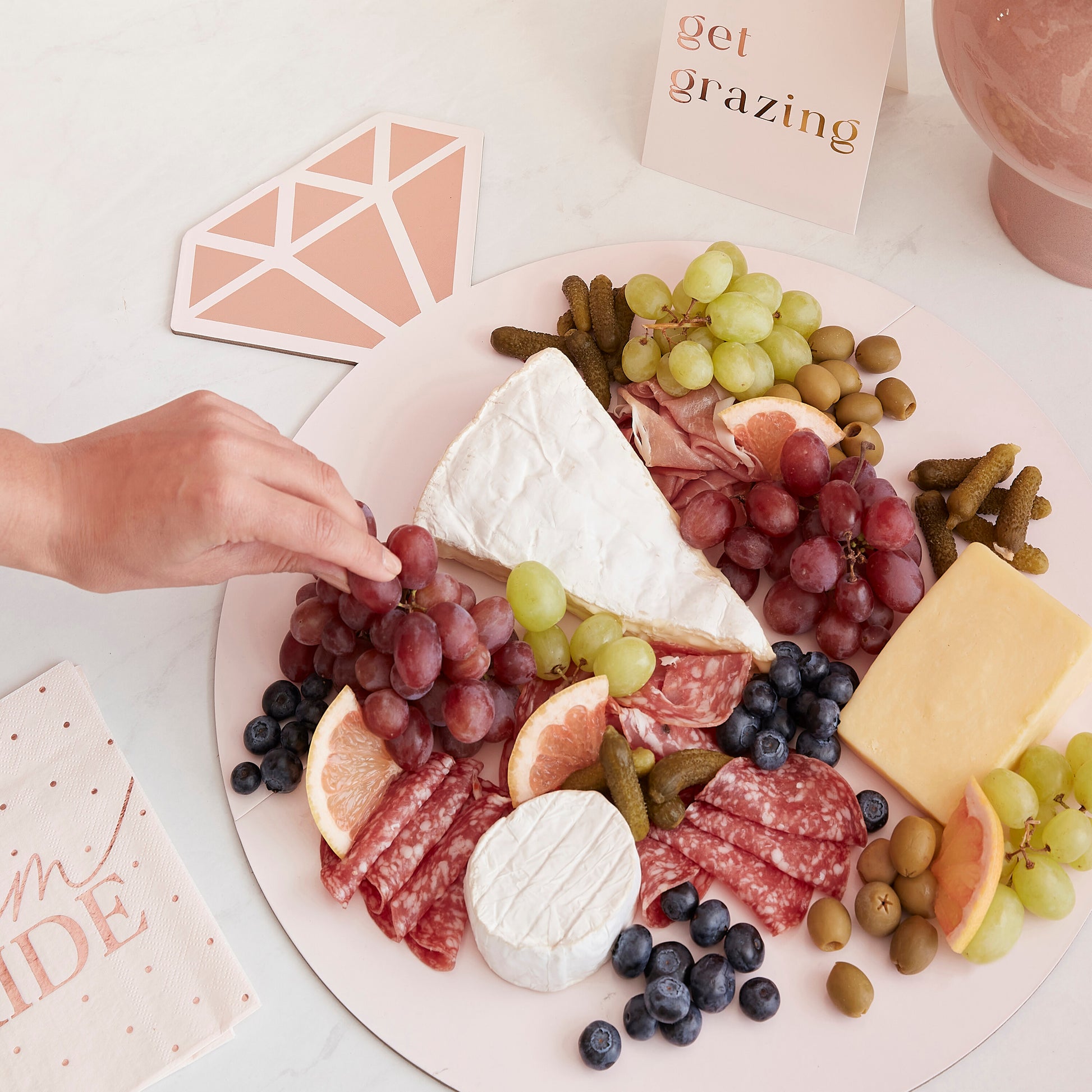 With this ring shaped board, you can create an amazing grazing table to serve up your party treats.