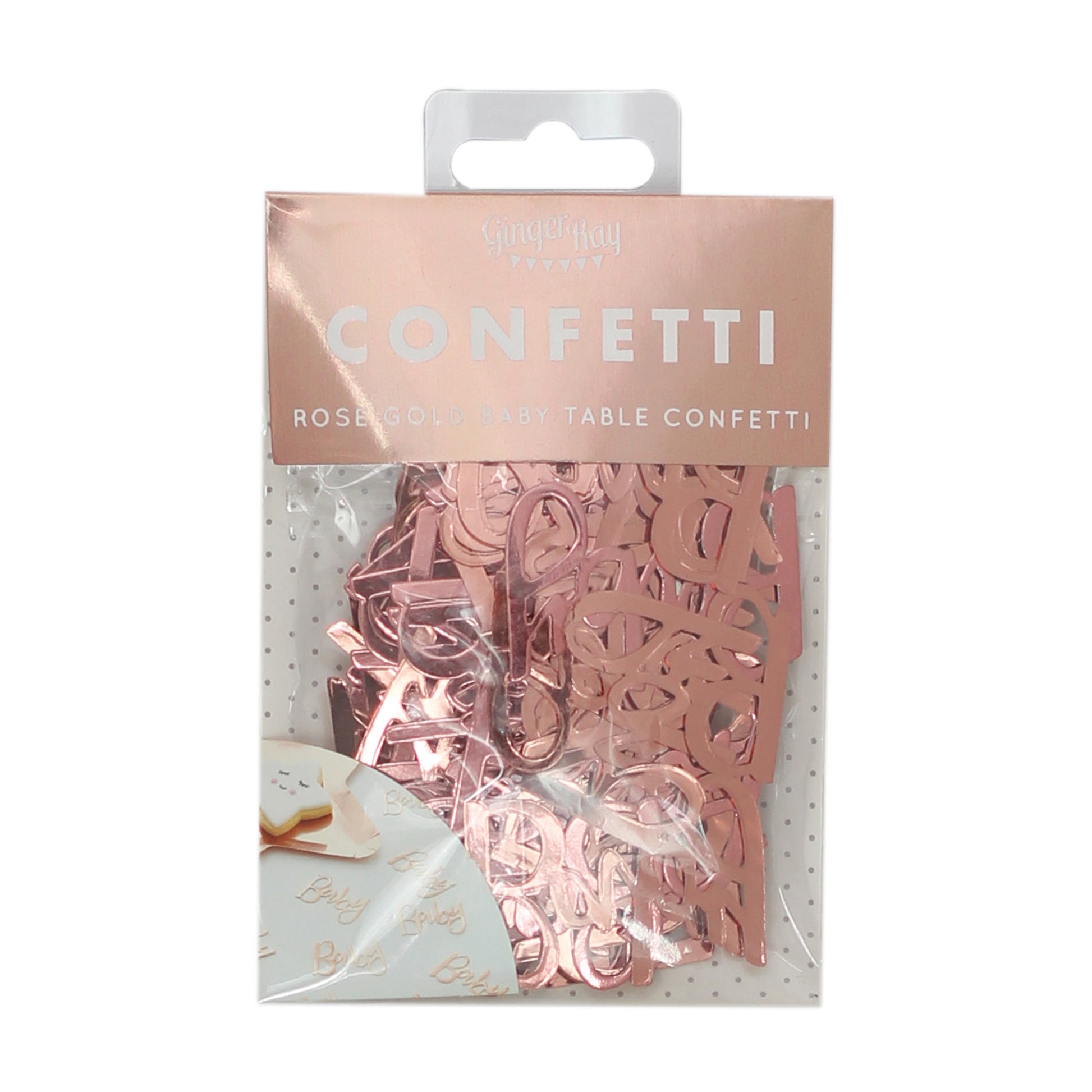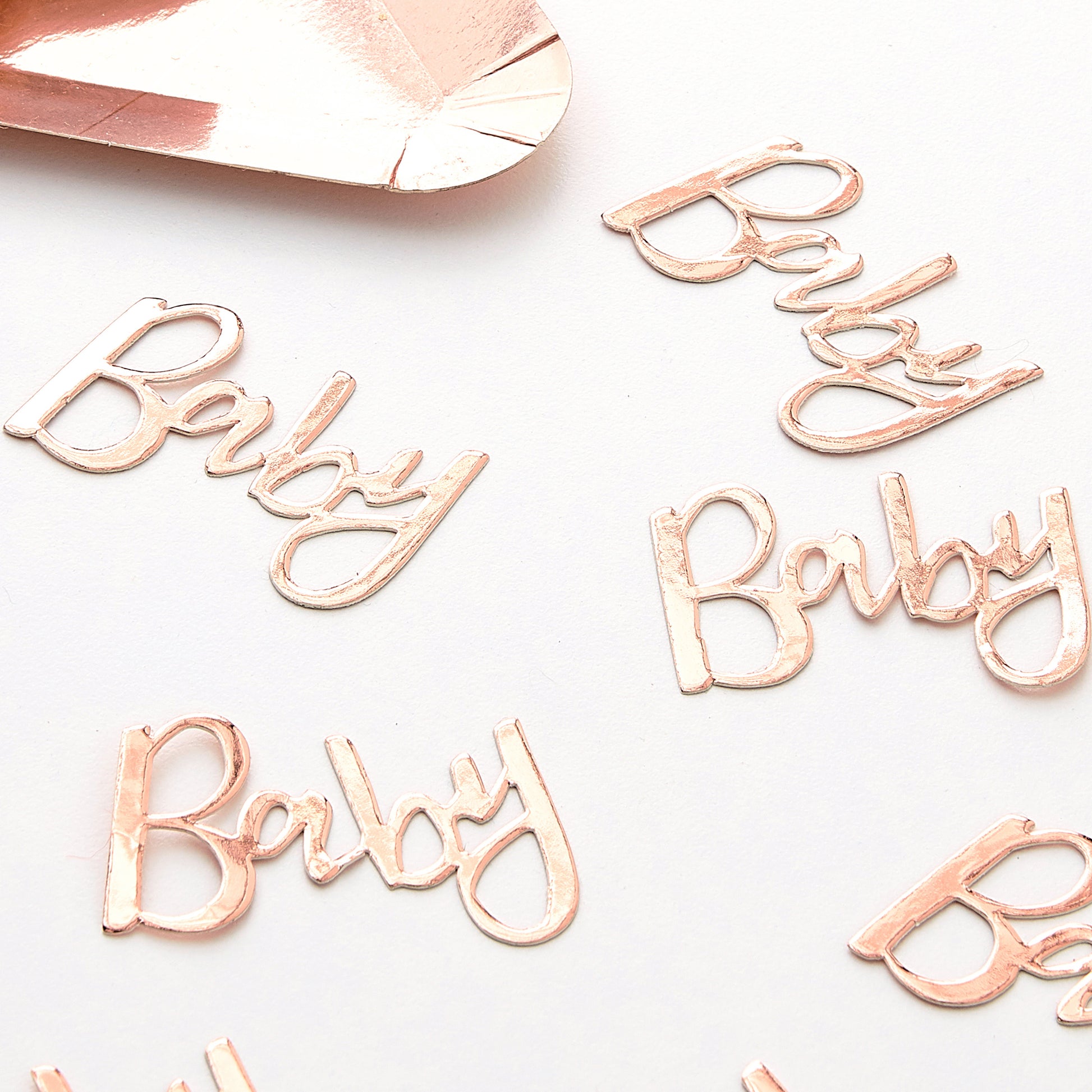 Bring the sparkle to the table with this rose gold baby shower confetti. An adorably cute confetti that will shimmer and shine in the stunning rose gold metalic.