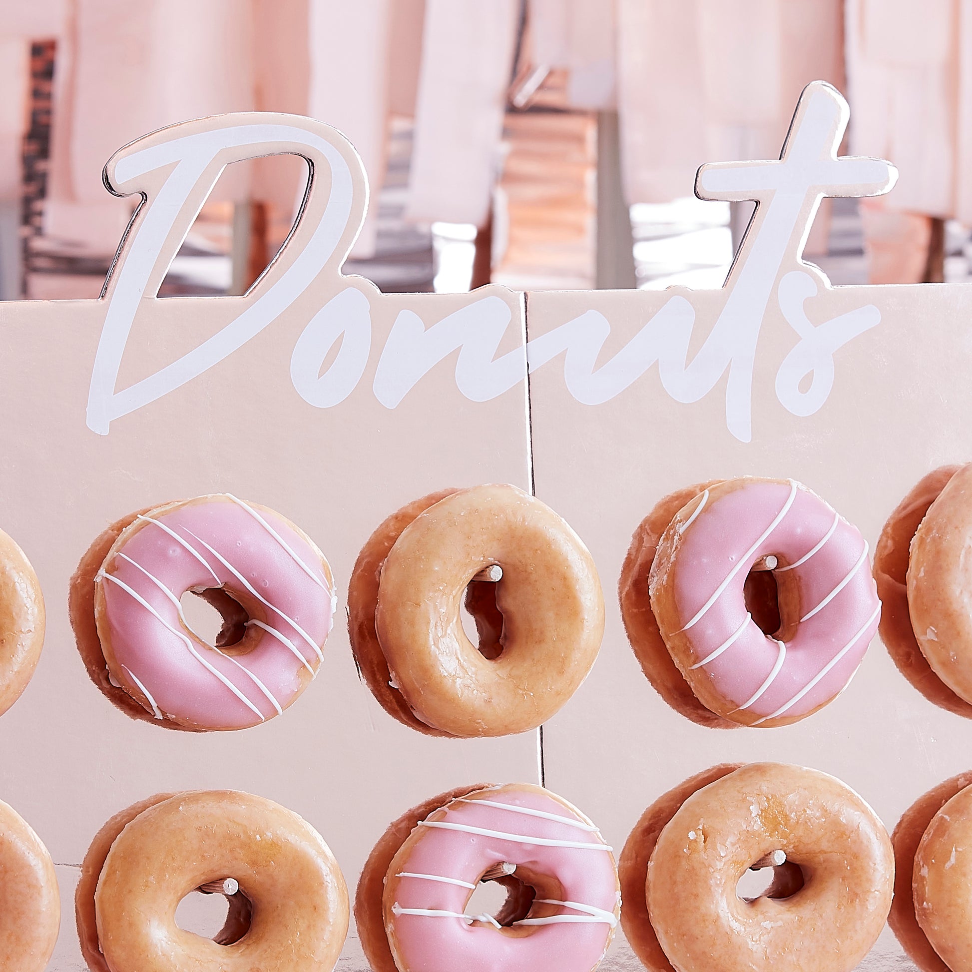 Our Rose Gold Donut Wall is a perfect way to add sweetness to your next celebration. Your guests will find it far too tempting to resist and is a fantastic cake alternative. The fully covered shimmering rose gold colour will be sure to have all your guests licking their lips wanting more.