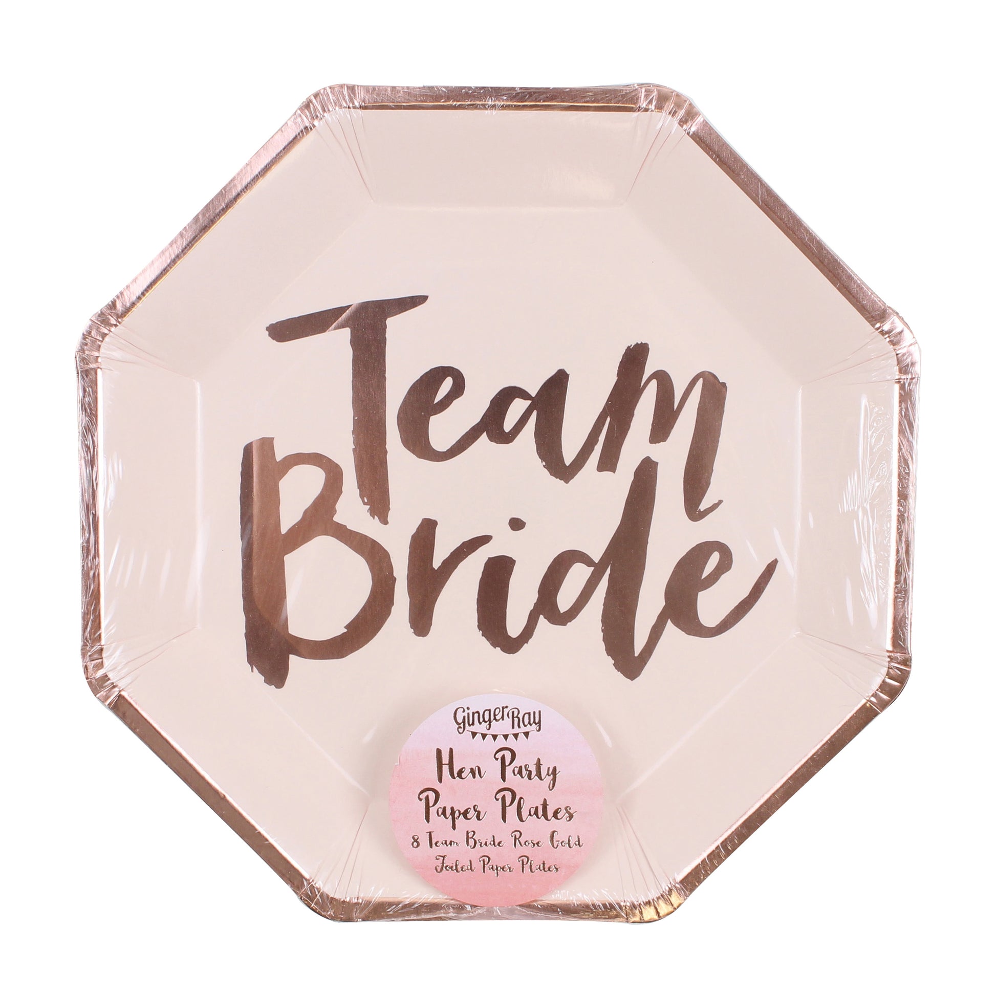 The Team Bride rose gold Paper Plate is perfect for eating tasty hen do treats. Whether you are dancing around the room or having a sit down meal, this plate will make sure the celebrations stay stylish!