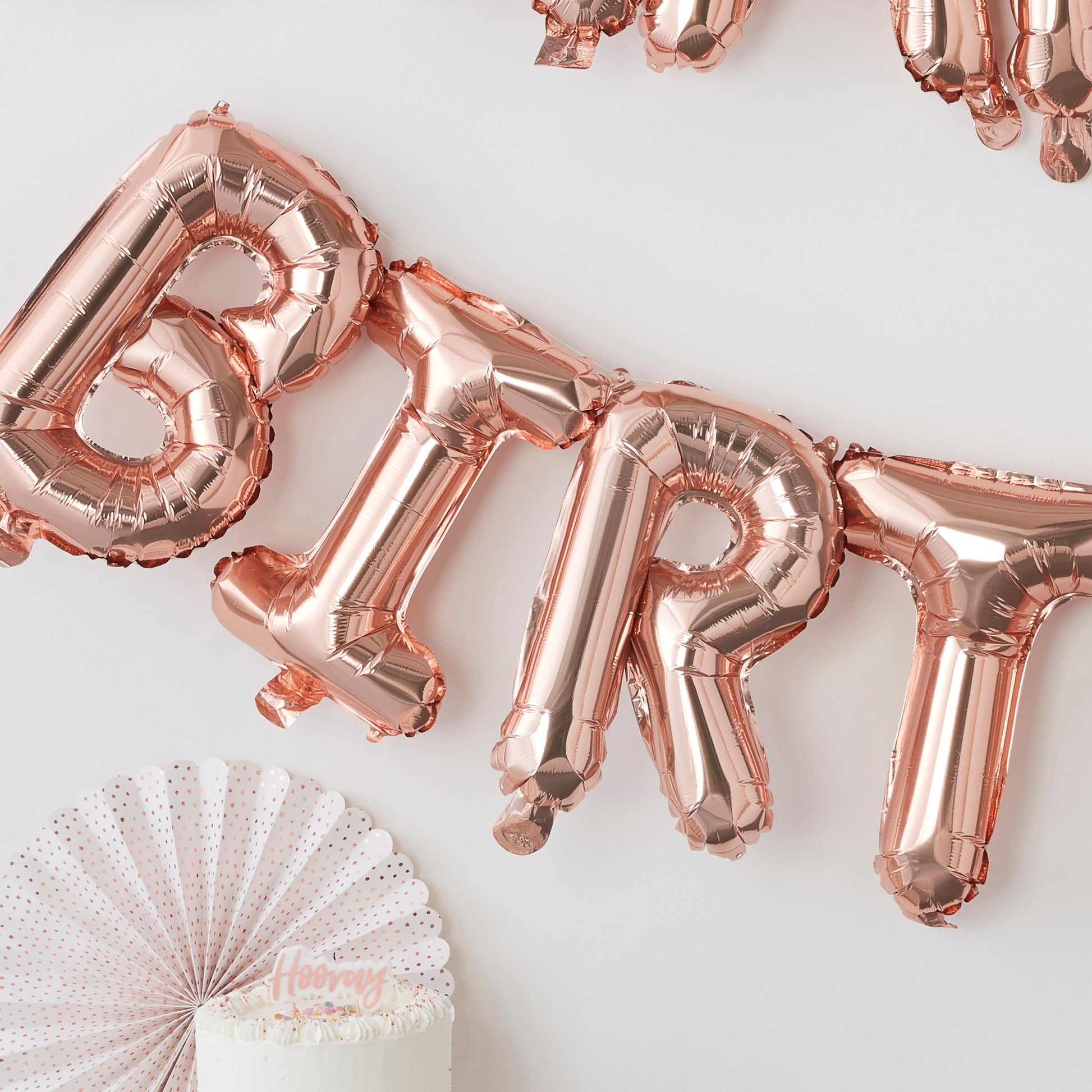 Our happy birthday bunting is easily inflated using a straw, no helium needed! The straw is provided. Mix the bunting with matching rose gold party decorations from the rest of our Pick & Mix range for a gorgeous perfect party!
