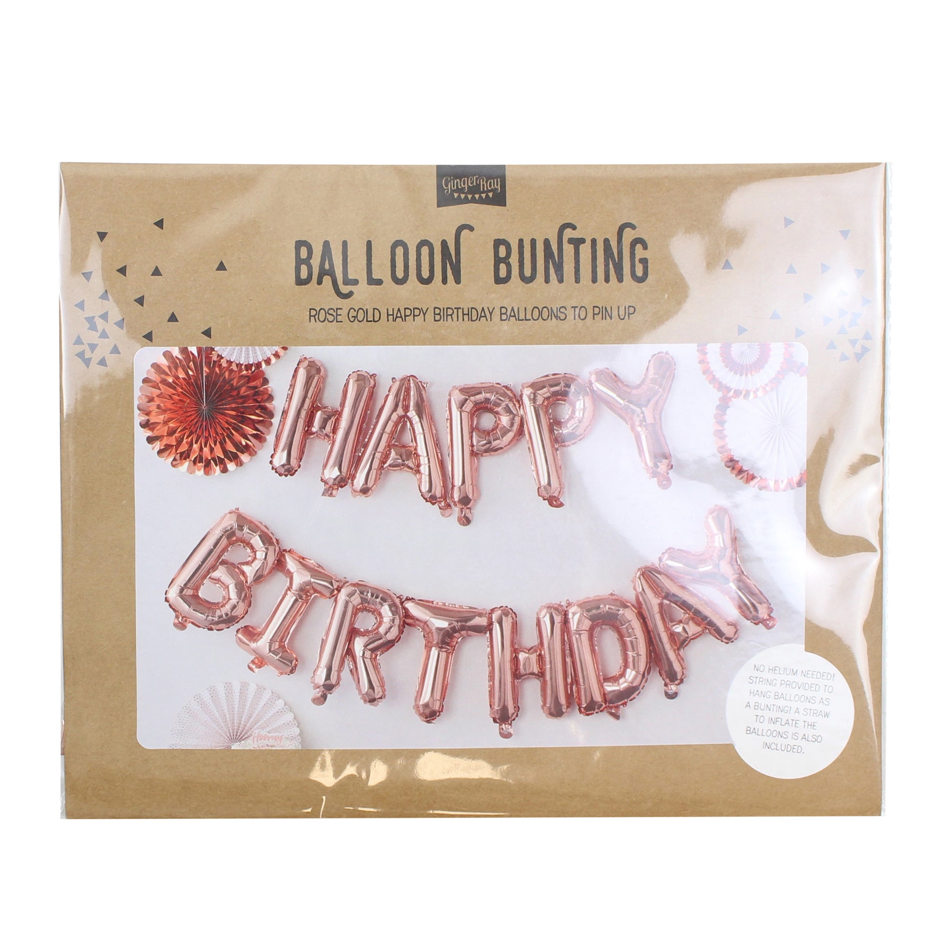Our Rose Gold Happy Birthday Bunting Balloon' will be the finishing touch to your party - You don't even need helium to inflate!