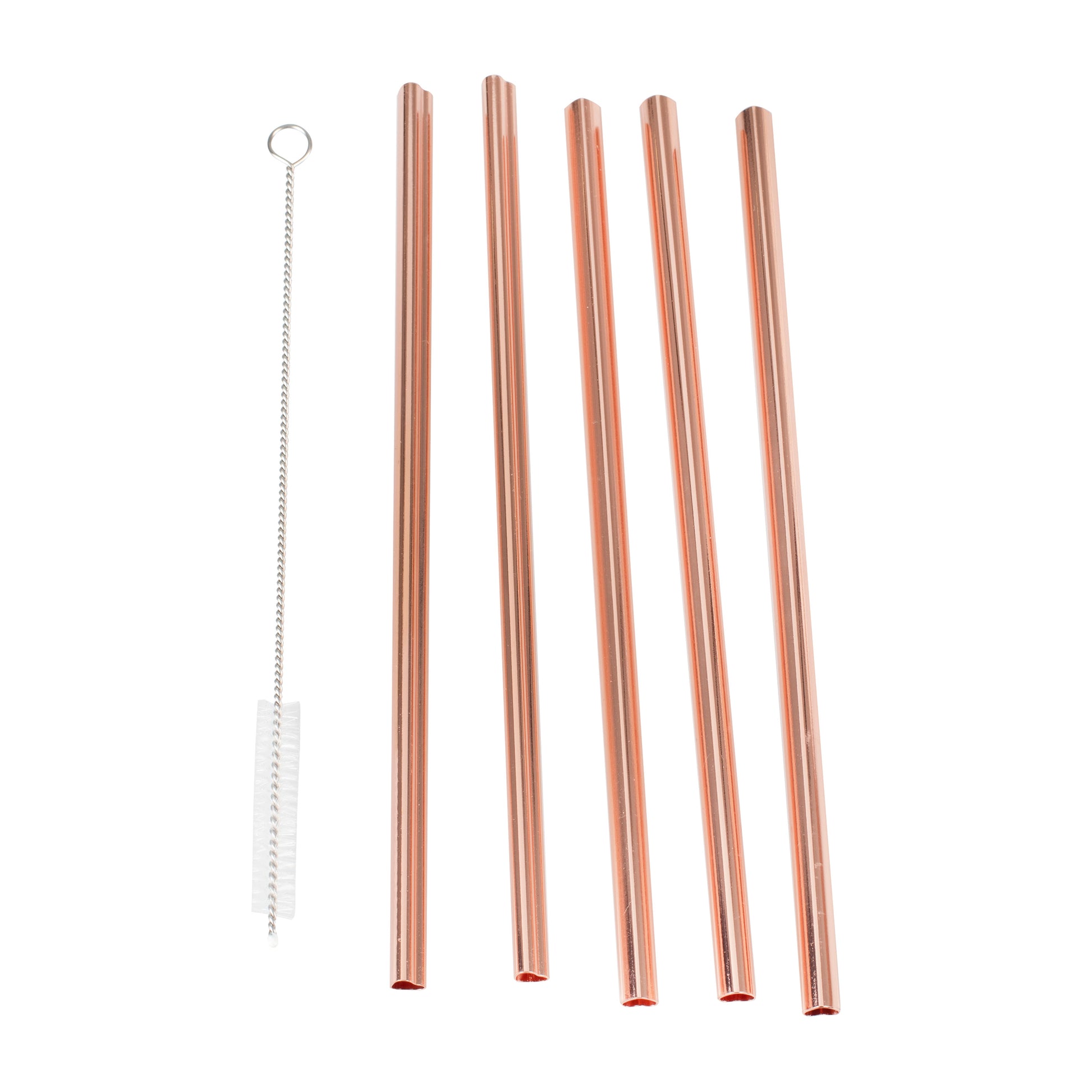 Each pack contains 5 x Rose Gold Metal Straws and 1 x cleaning brush. Each straw measures 21.5cm H