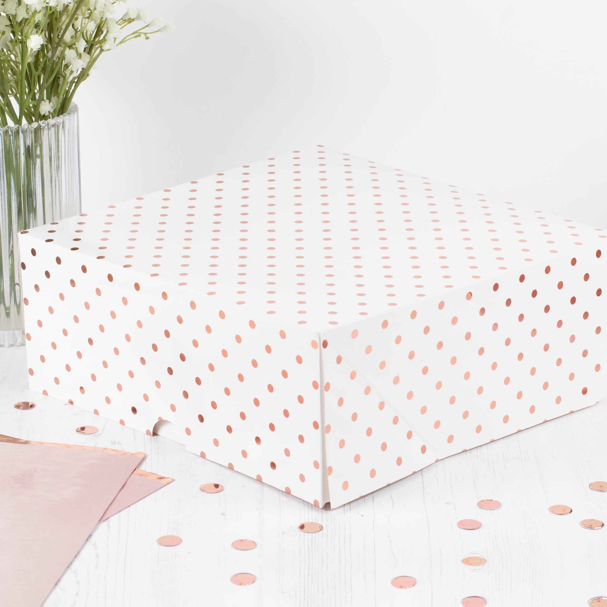 These rose gold spotty cake boxes are the perfect way to present or carry all kinds of cakes!