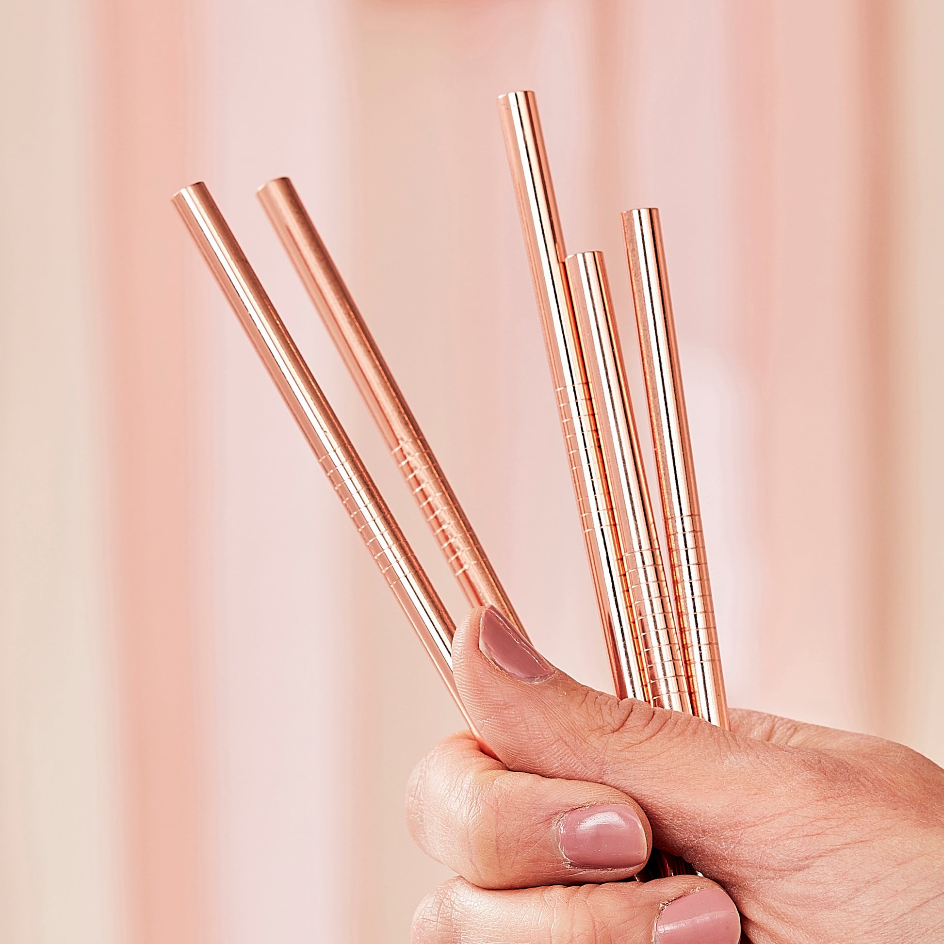 These rose gold stainless steel straws are a classic reusable straw alternative - clean with the brush provided and use again and again! Perfect for parties and everyday use.