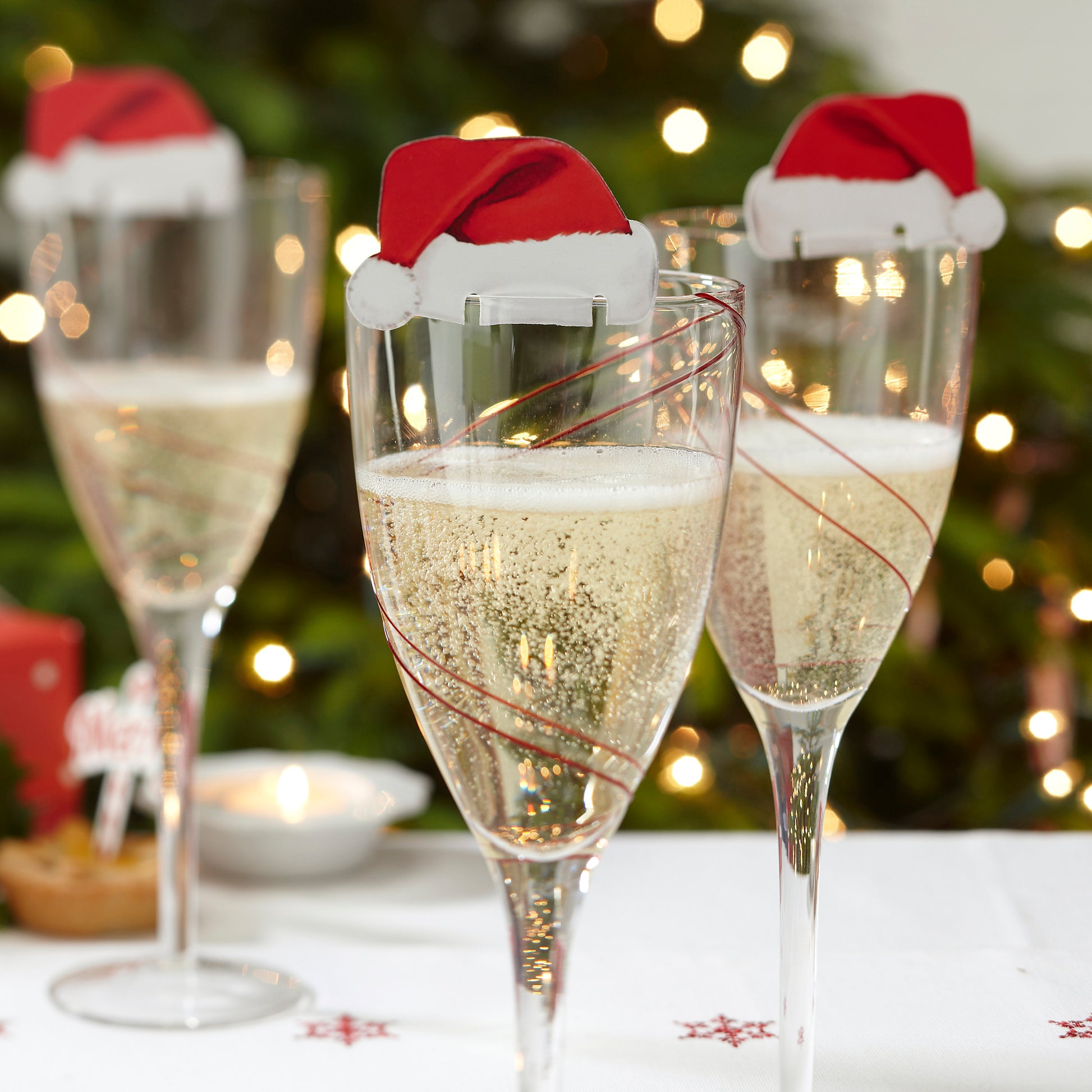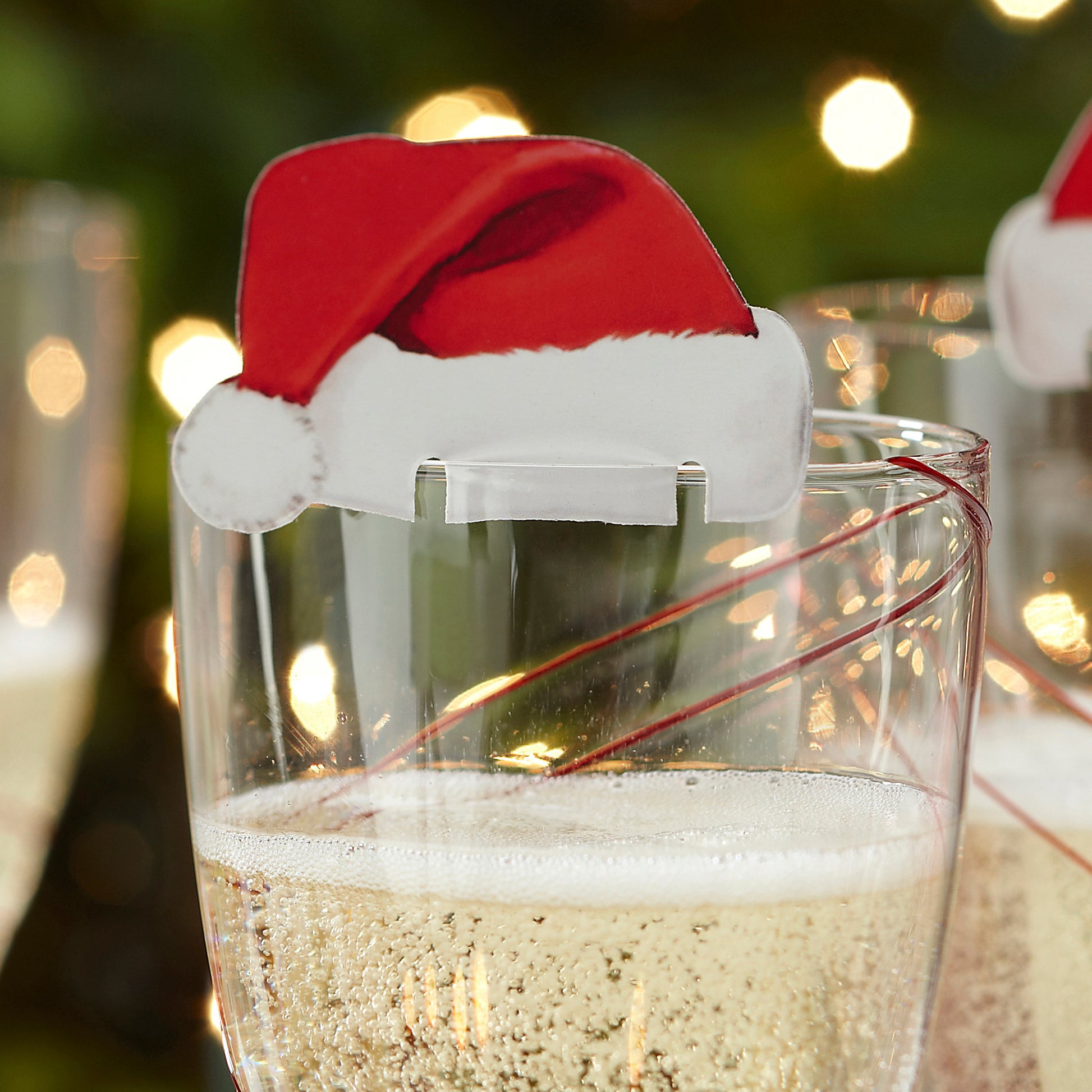 Cheer up your festive glasses of bubbly with these cheeky Santa hat Christmas glass decorations.