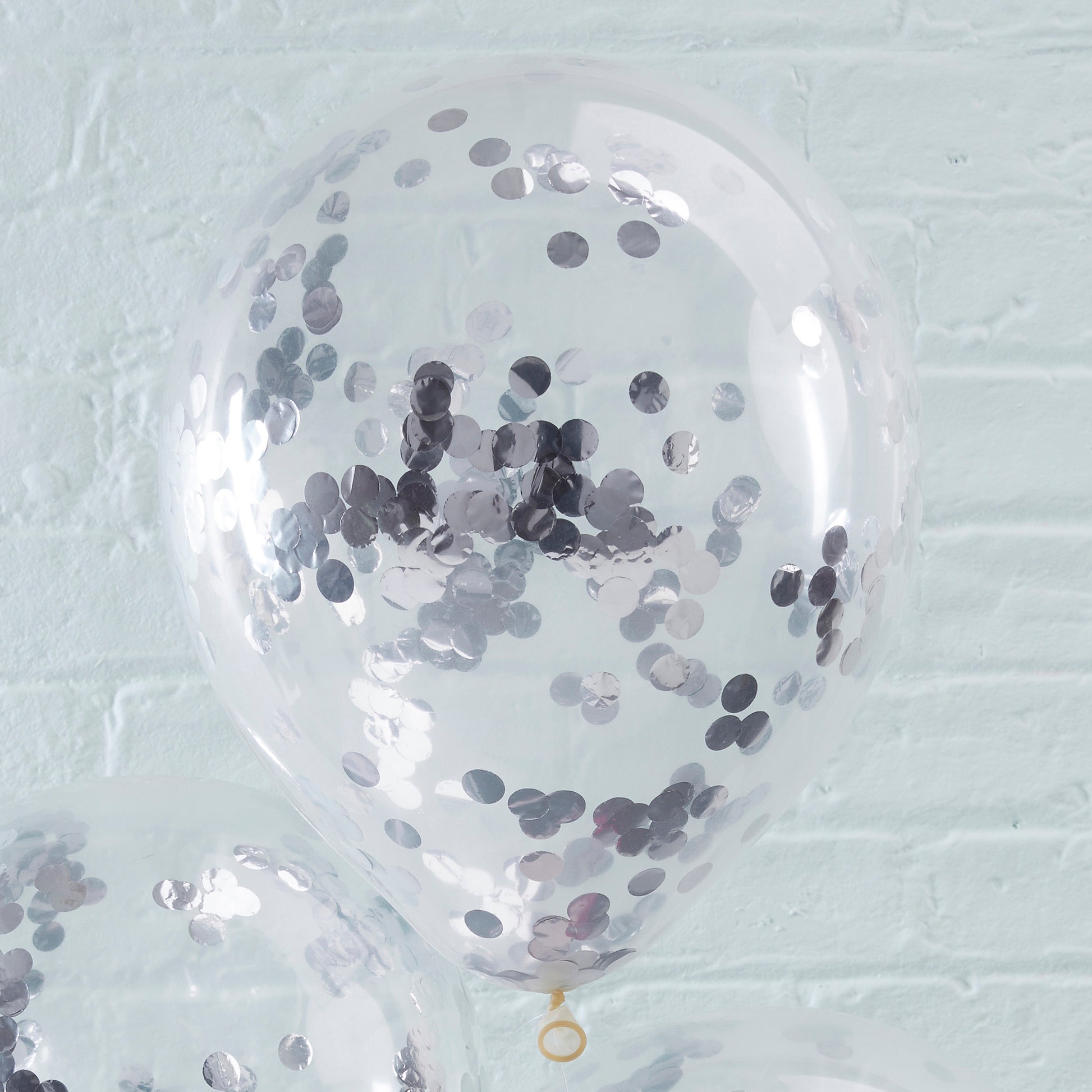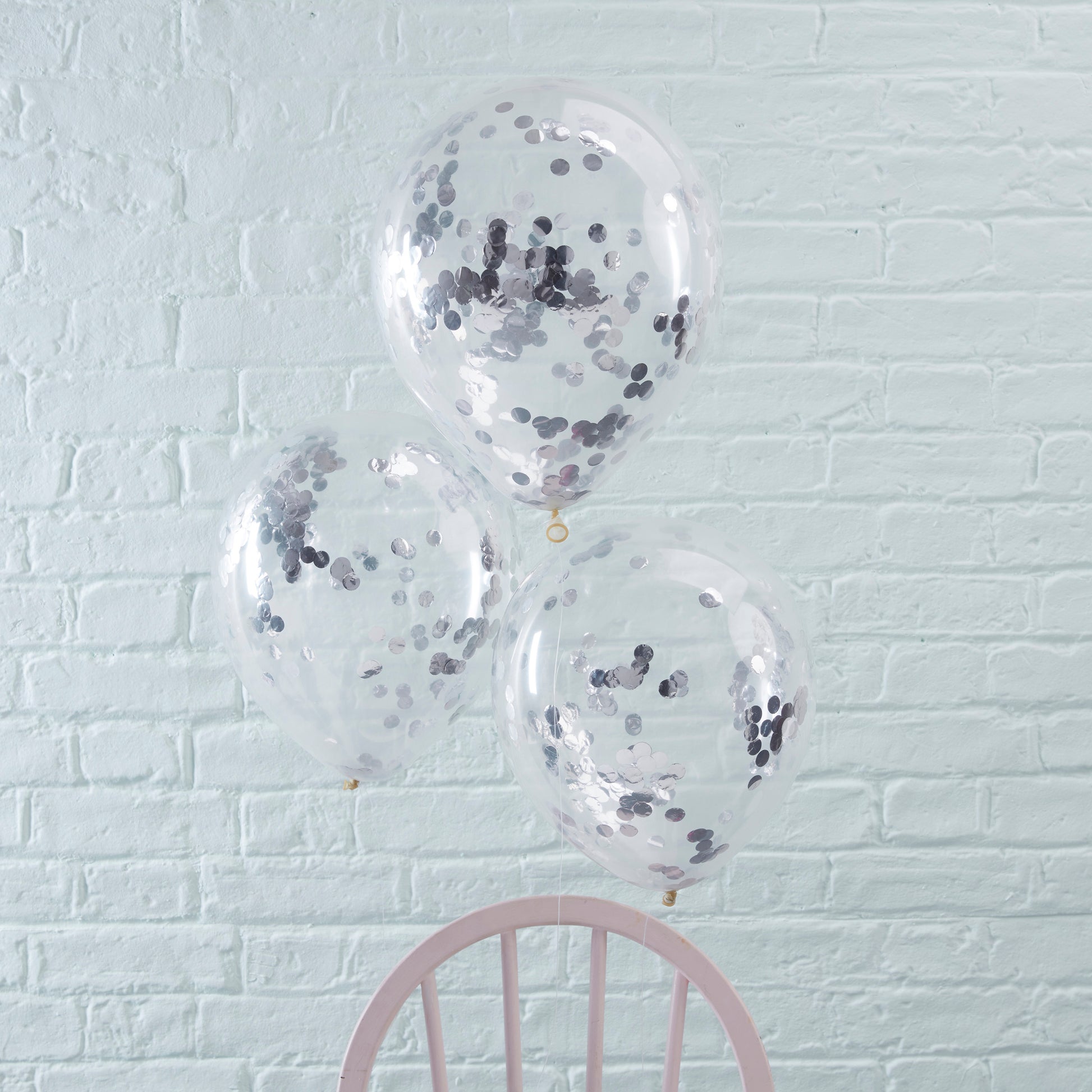 To make the confetti stick to the sides of the balloons best, we recommend inflating the balloons with a mixture of helium and a good of puff of air! Combine with more of our silver party decorations to continue the theme
