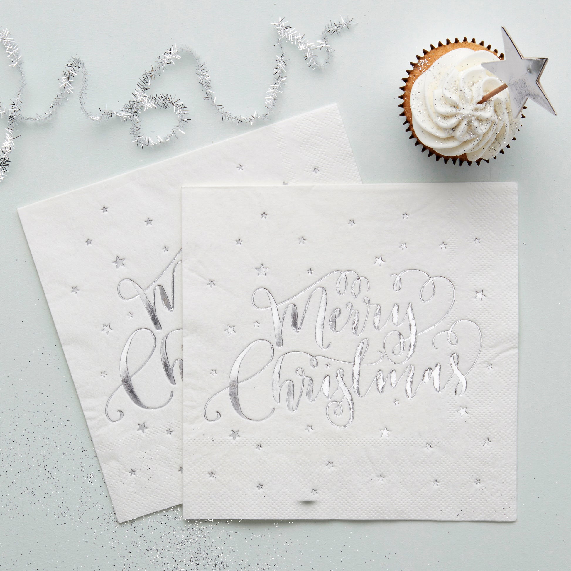Add a touch of sparkle to your Christmas this year with these beautiful silver foiled 'Merry Christmas' napkins. The perfect way to make your Christmas table more chic!