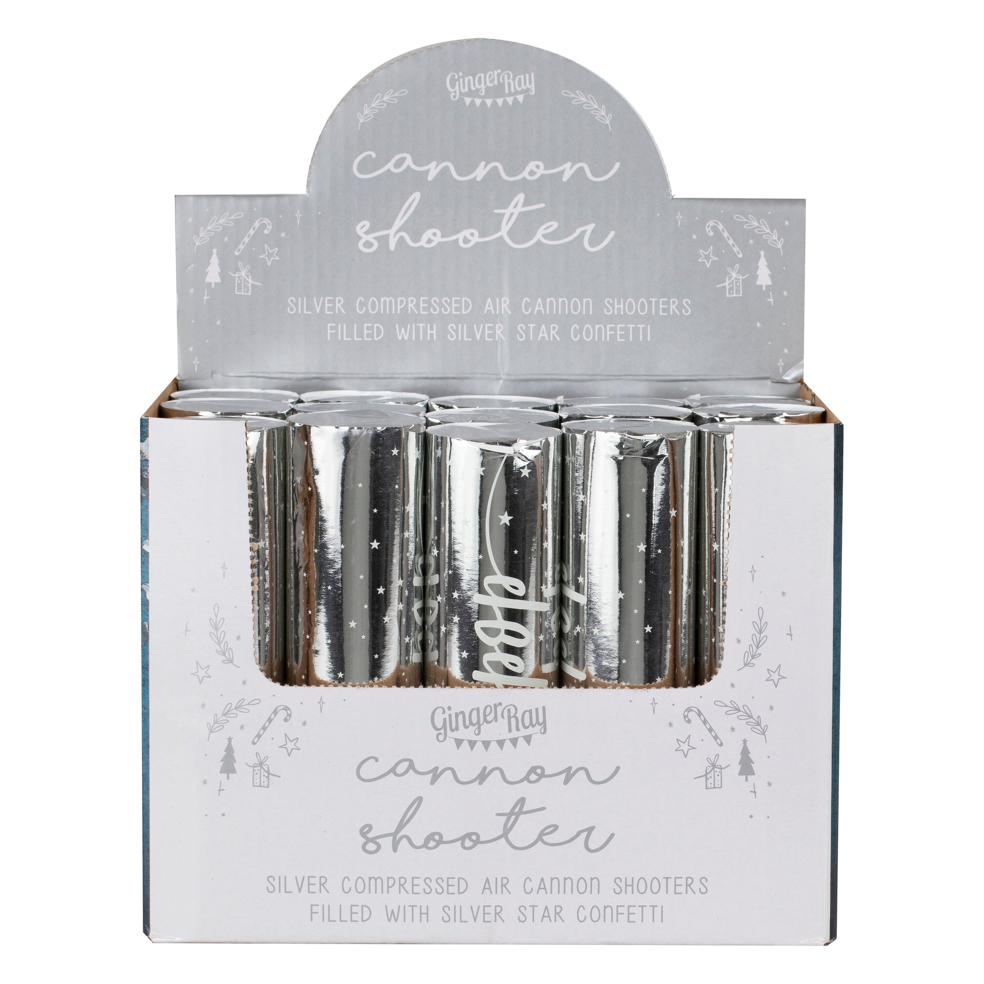 The silver confetti cannon shooter is filled with gorgeous silver foil star confetti pieces. The perfect POP for the festive period.