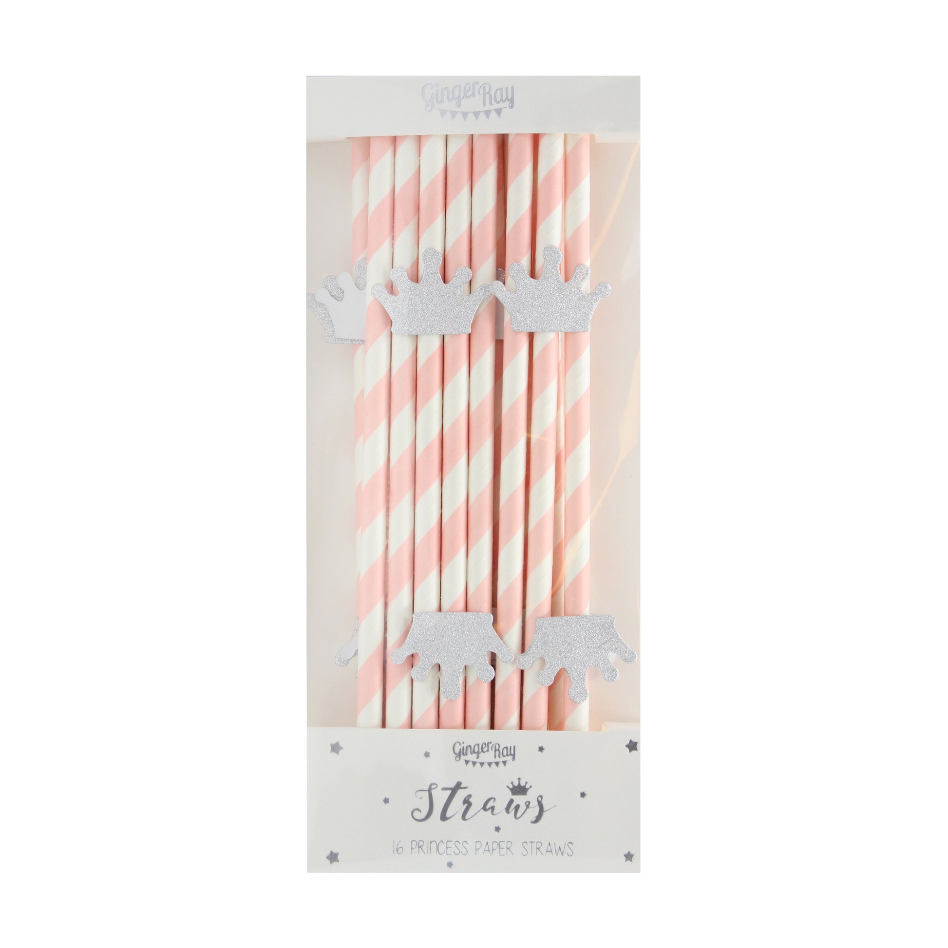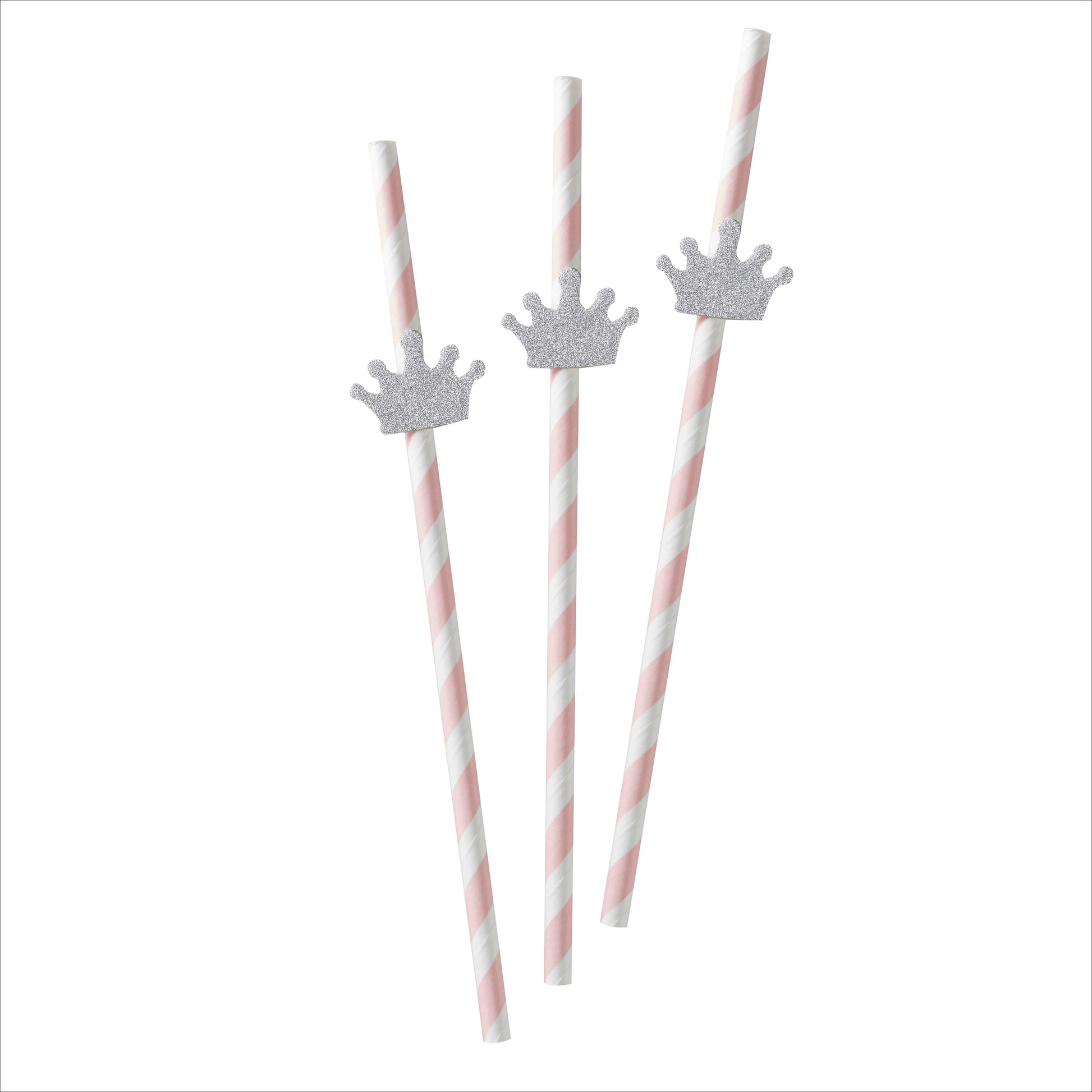 These pink and white striped Paper Straws are the perfect addition to any drink at your princess birthday party. Each straws has an adorable silver glitter heart - super cute and different to any princess straw before!