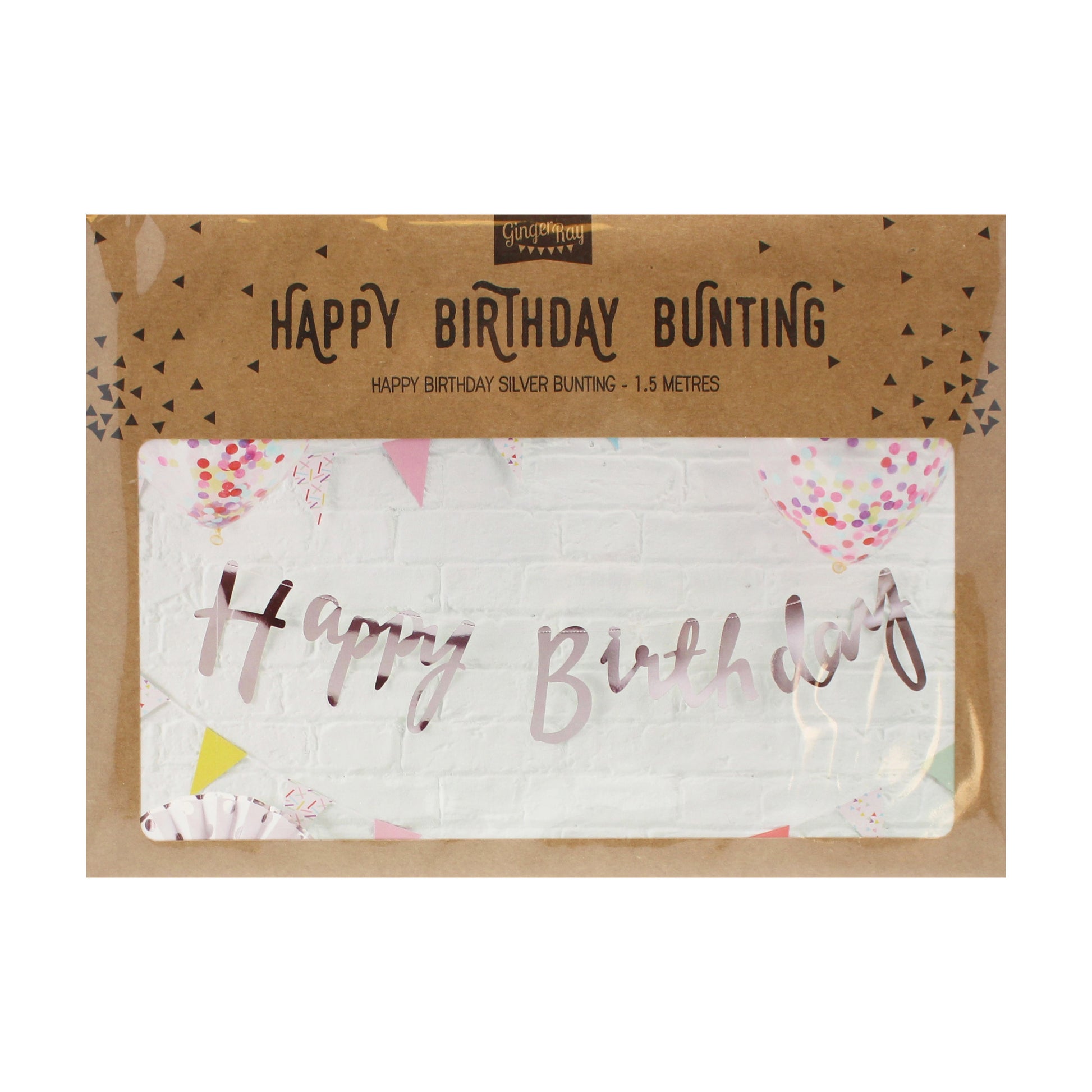 Silver Happy Birthday Bunting measures: 1.5m in length.