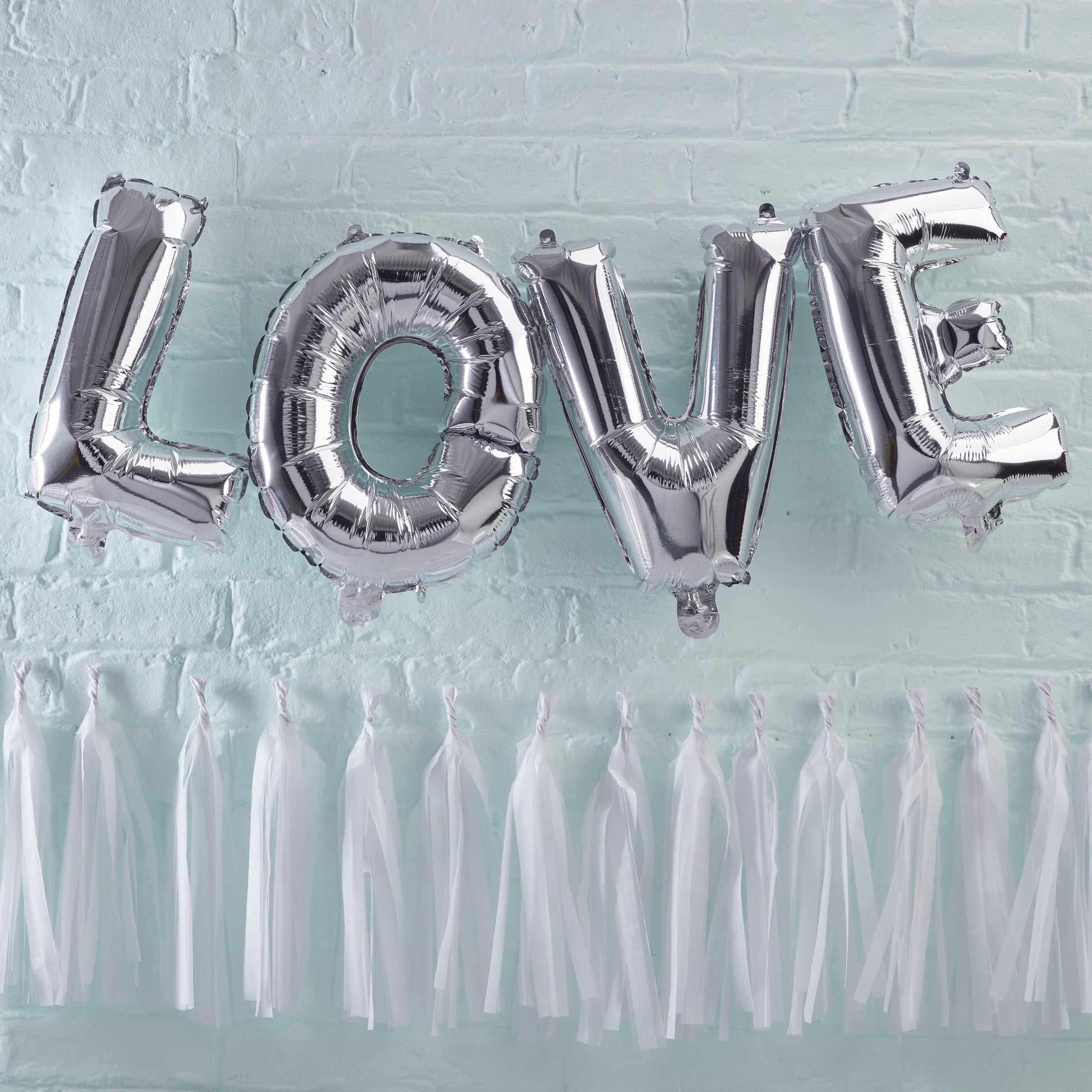 The 12" silver foiled letters can be strung along the clear twine provided to create the stunning balloon bunting which spells LOVE! Use the twine to hang the balloons in any locations - No need for helium.