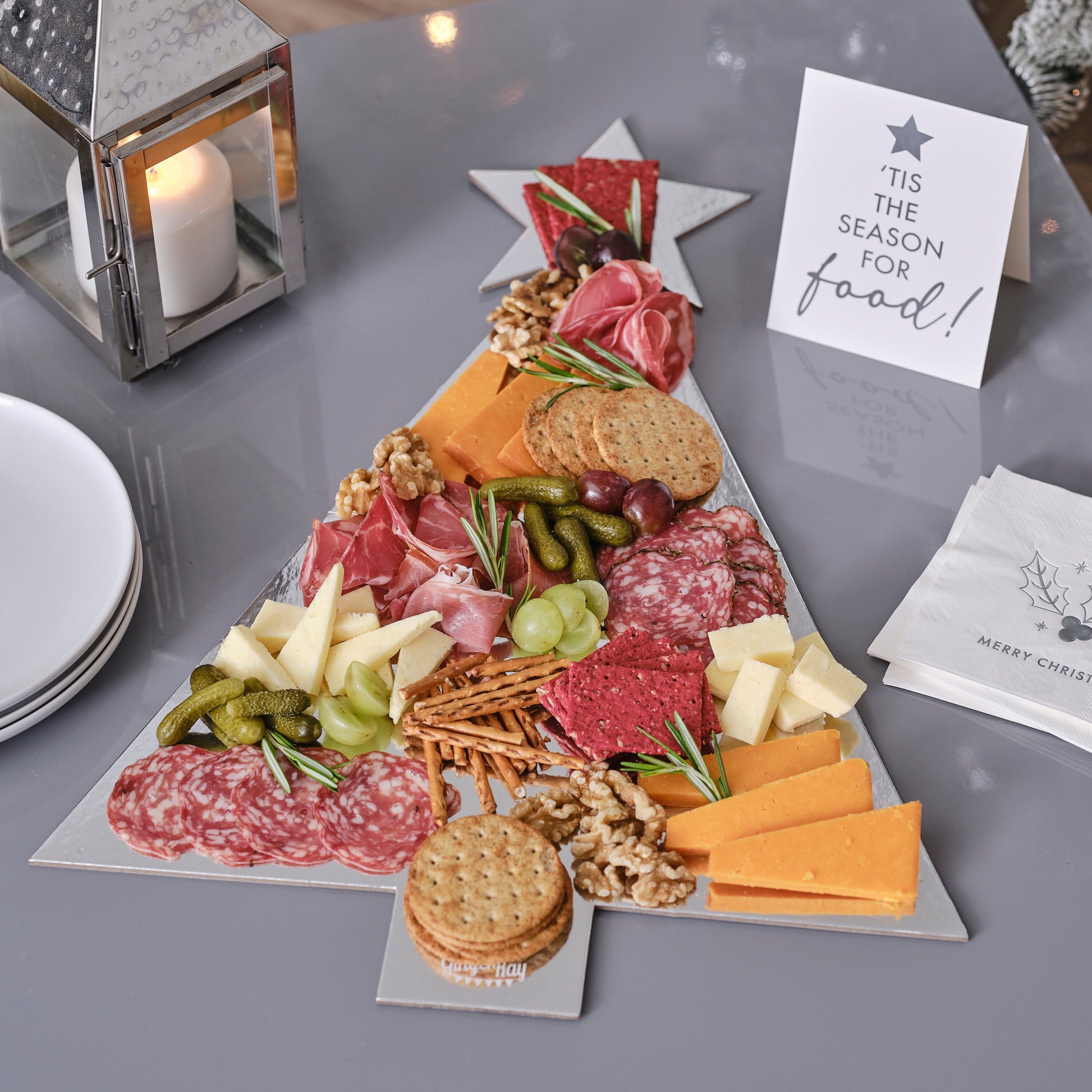 This silver tree shaped grazing board is perfect for hosting this festive season, and delicious Christmas party food is the best way to please a crowd.