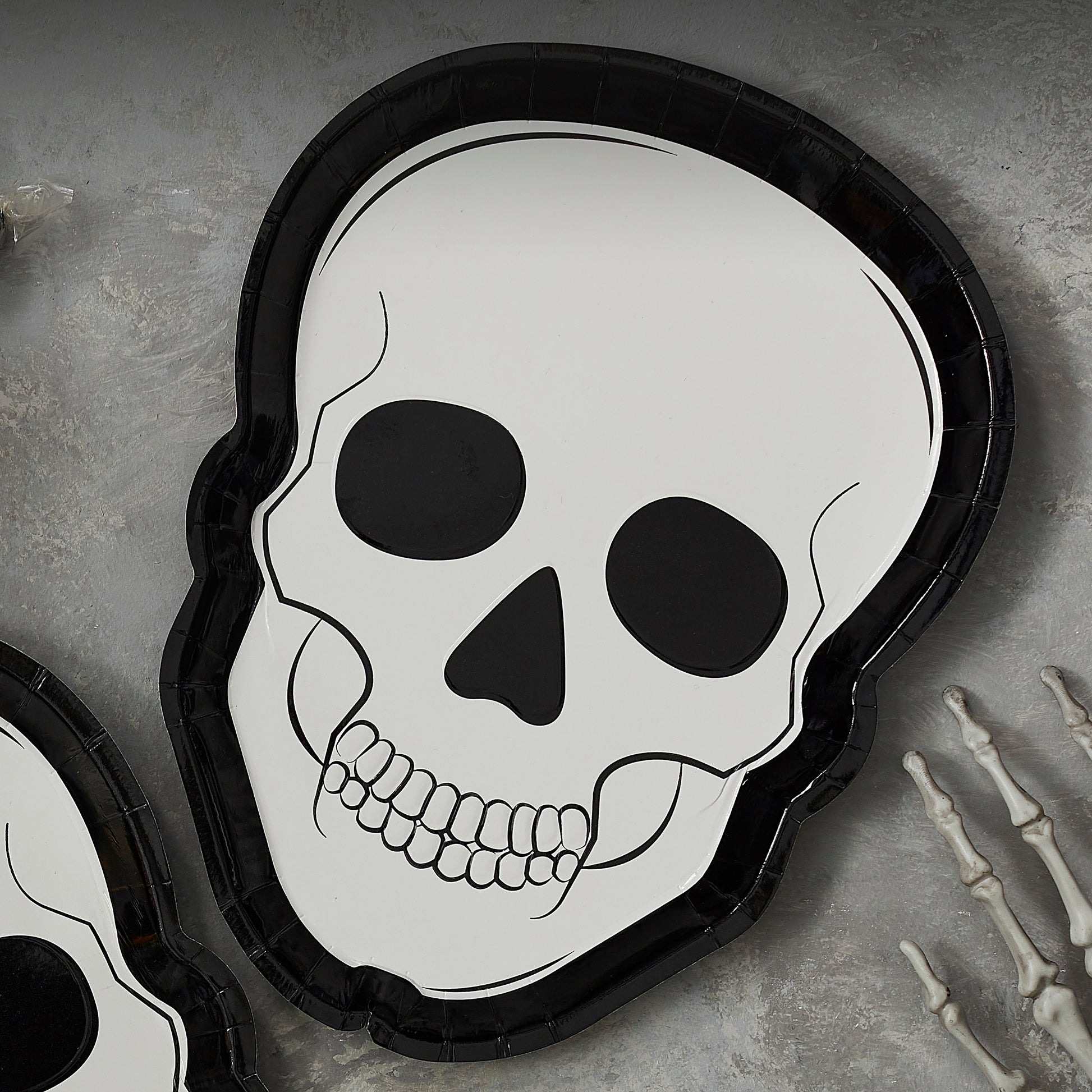Create a spine-chilling Halloween party table with these skull shaped paper plates, ideal for making your Halloween party table come to life.