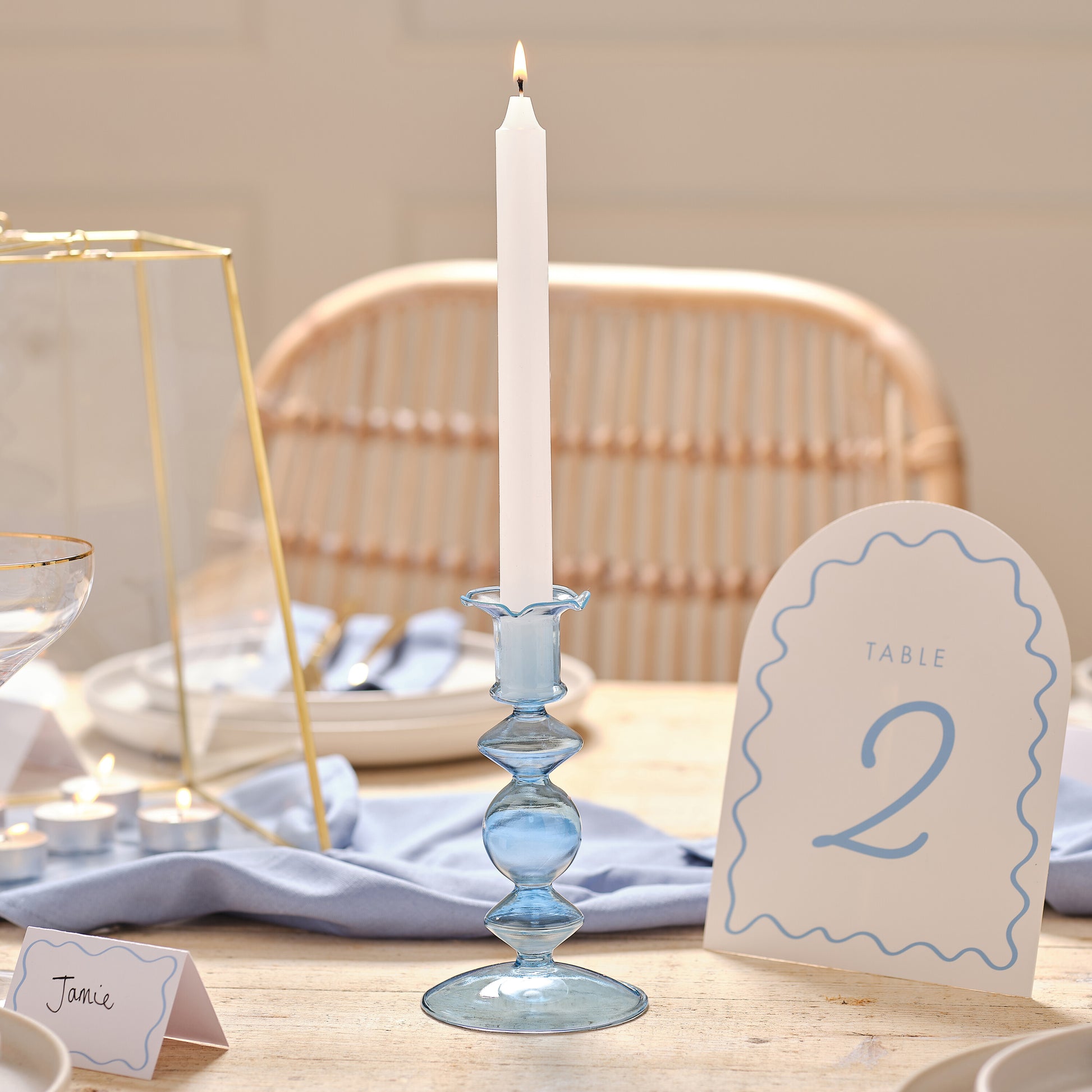 Add a touch of serene elegance to your wedding decor with our small bubble glass candle holder - featuring a soft, calming blue hue that complements any wedding theme, from beachside celebrations to elegant garden affairs.