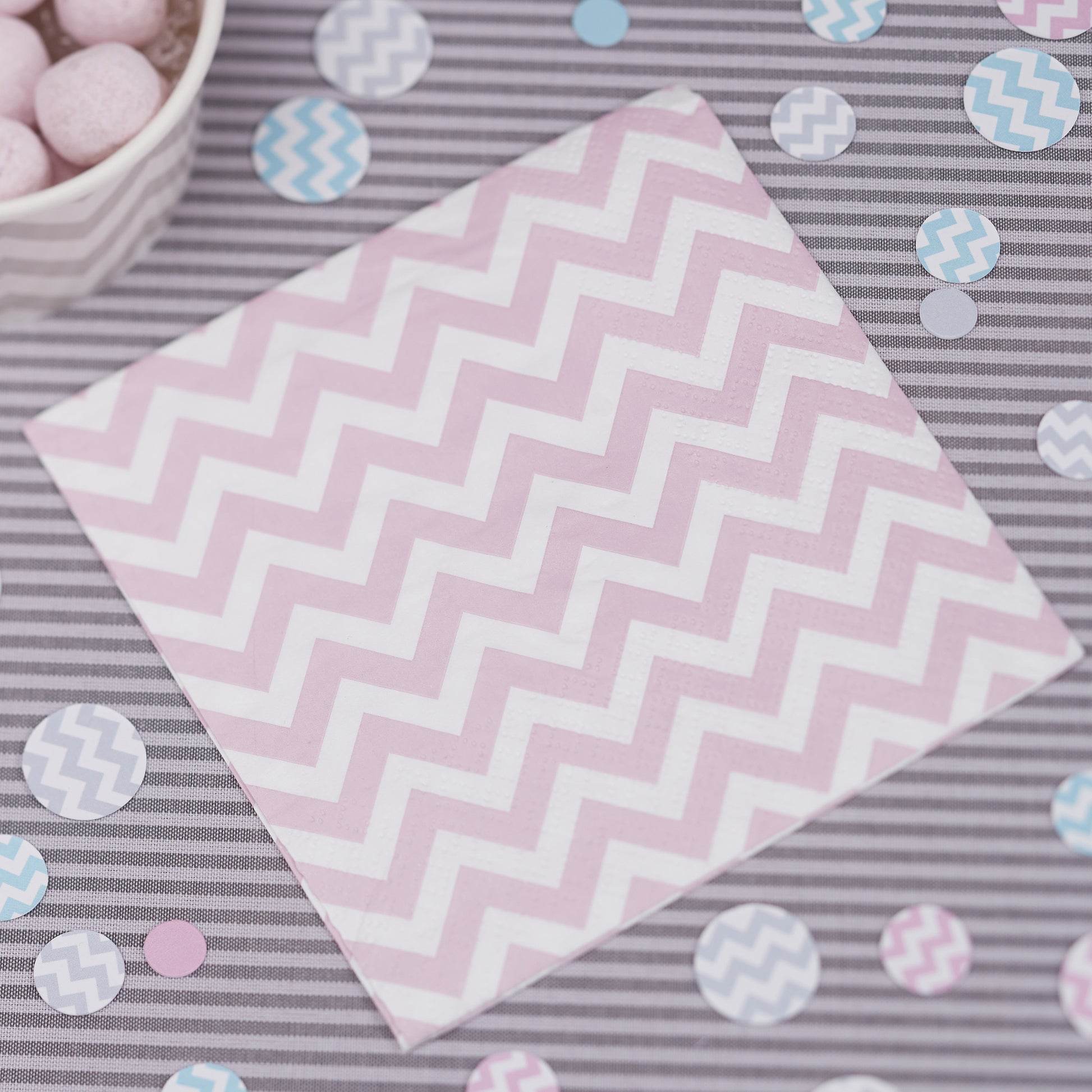 Cute pink chevron design mini paper napkins.