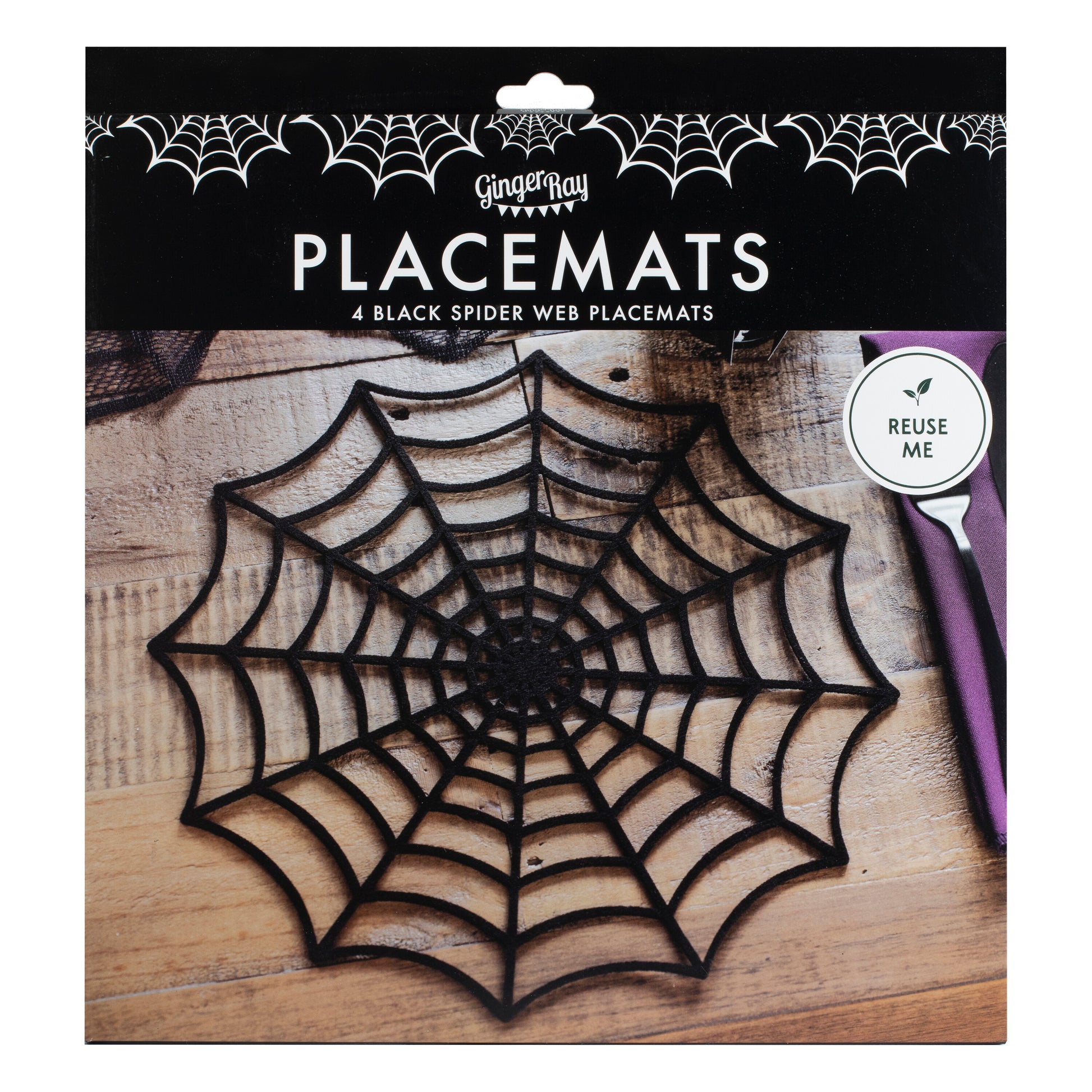 Transform your Halloween party in seconds by adding these fabric spider web Halloween placemats to your tableware.