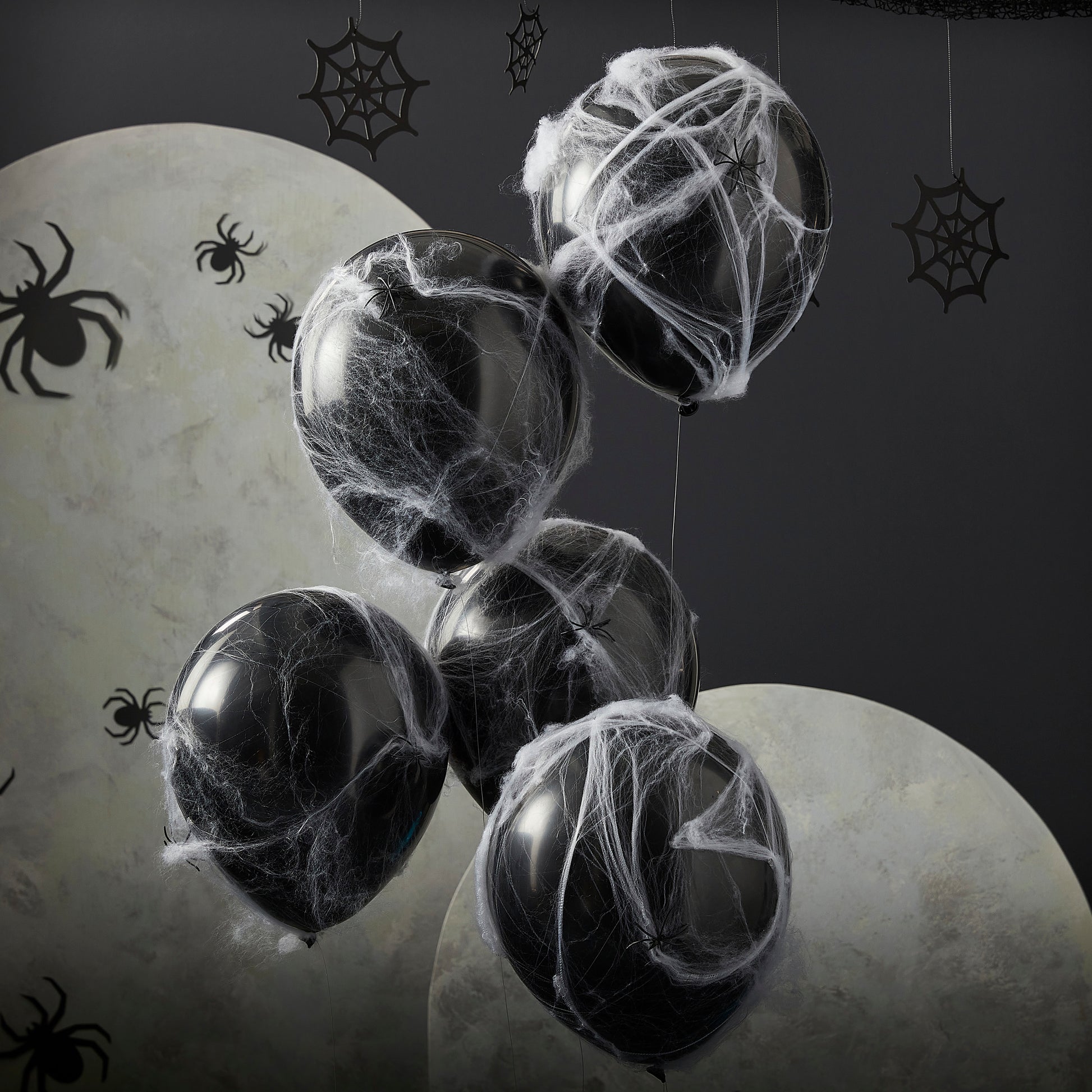 Take your balloons to the next level and give your guests a fright with these Spiders and Cobwebs Halloween Balloons!