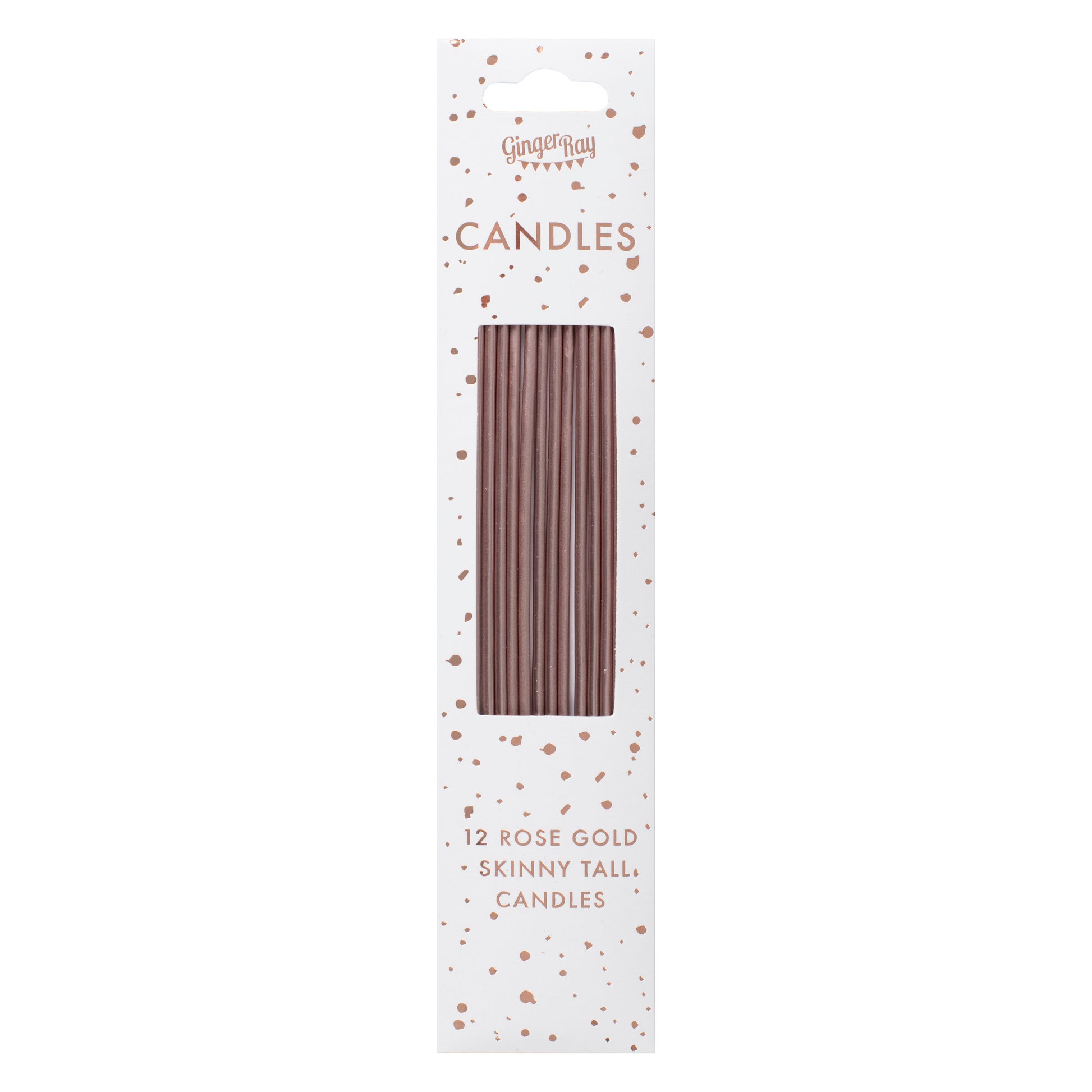 12 x Tall Candles in Rose Gold, each measuring 18cm (H).
