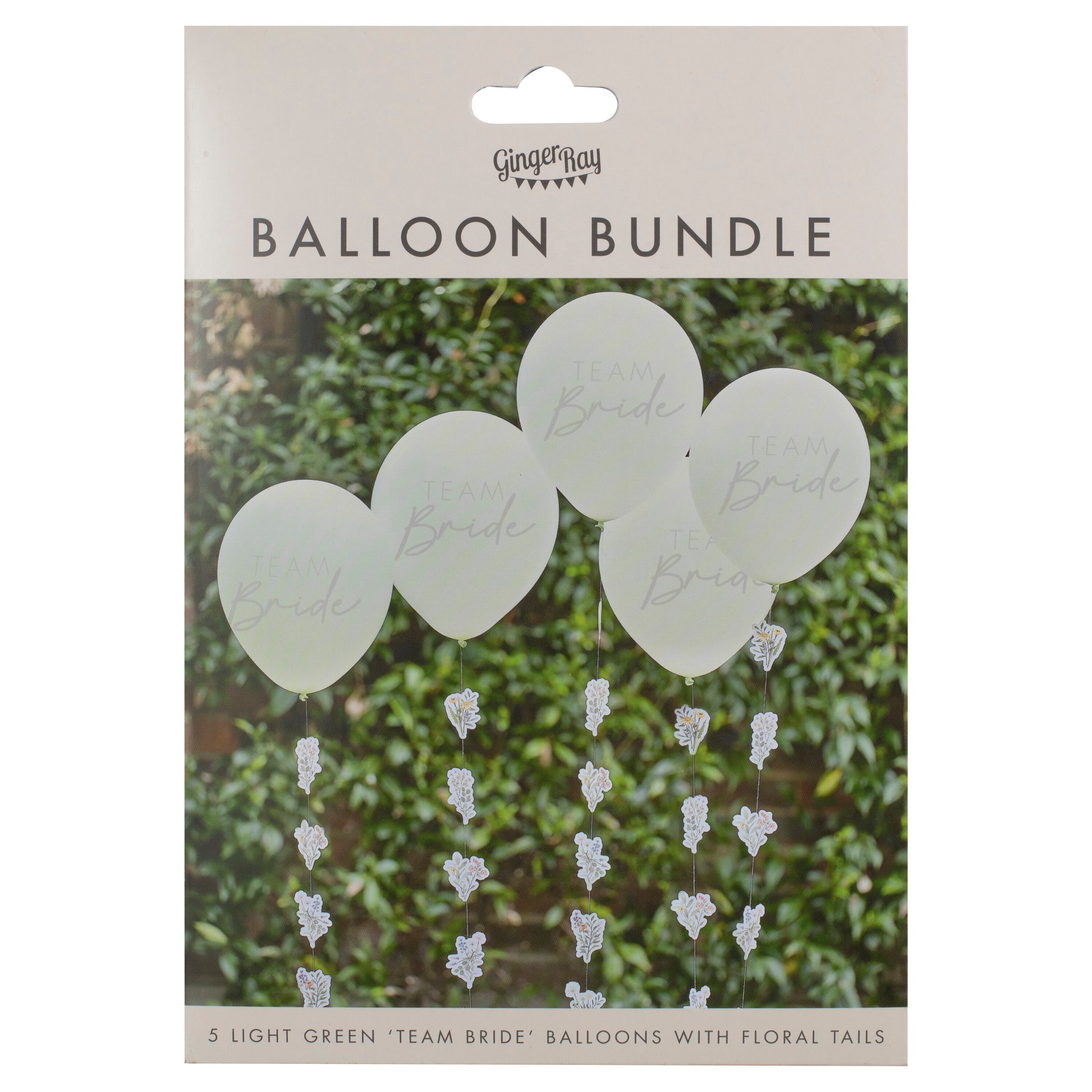 5 x 12" light green latex balloons, with 'Team Bride' in grey lettering