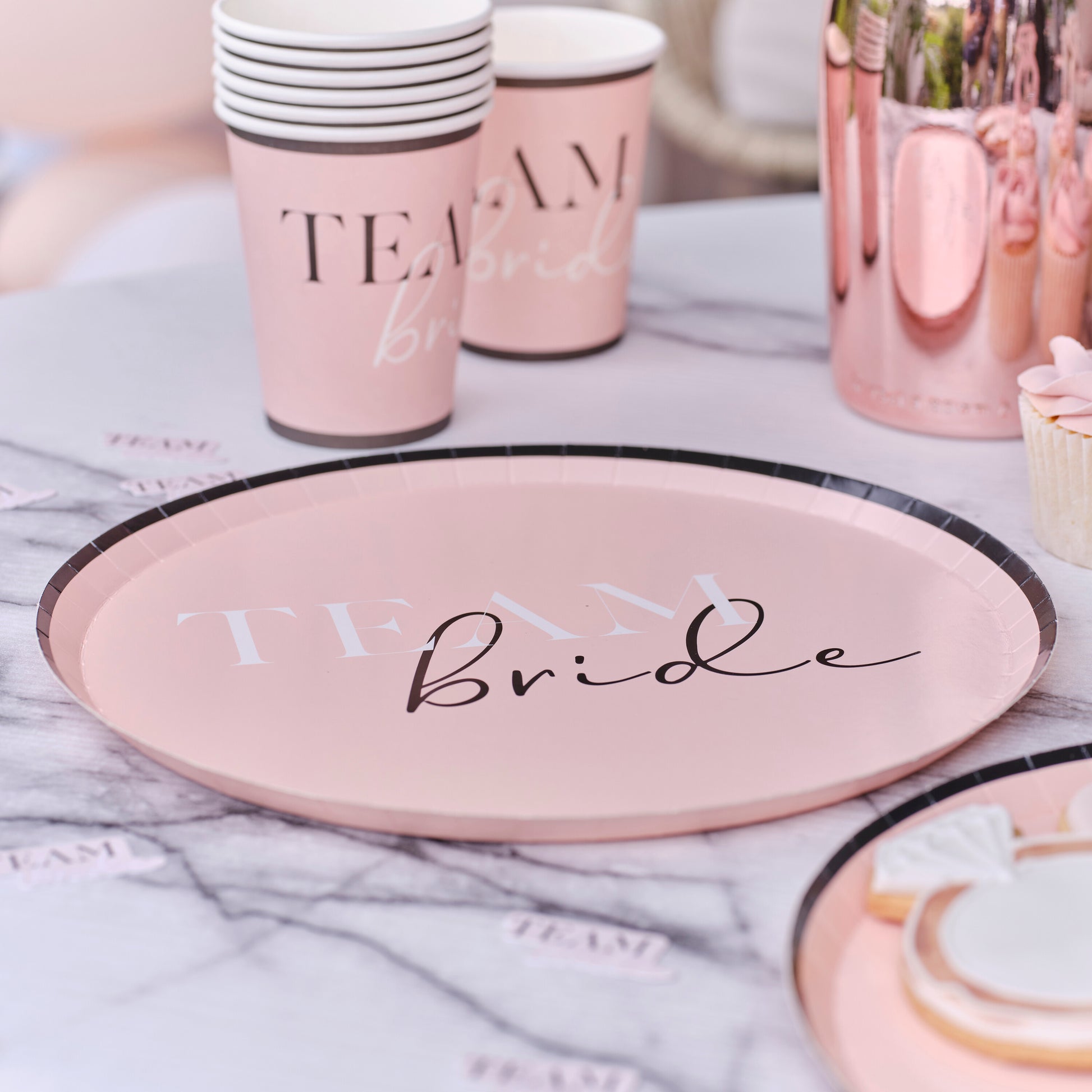 Serve tasty hen party treats with these chic Team Bride paper plates.