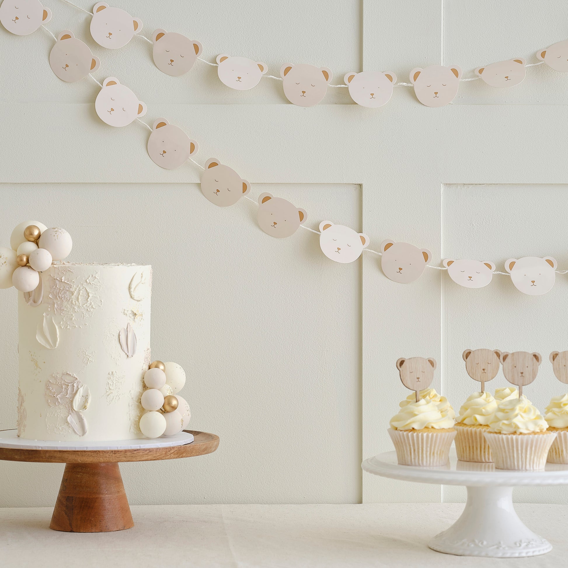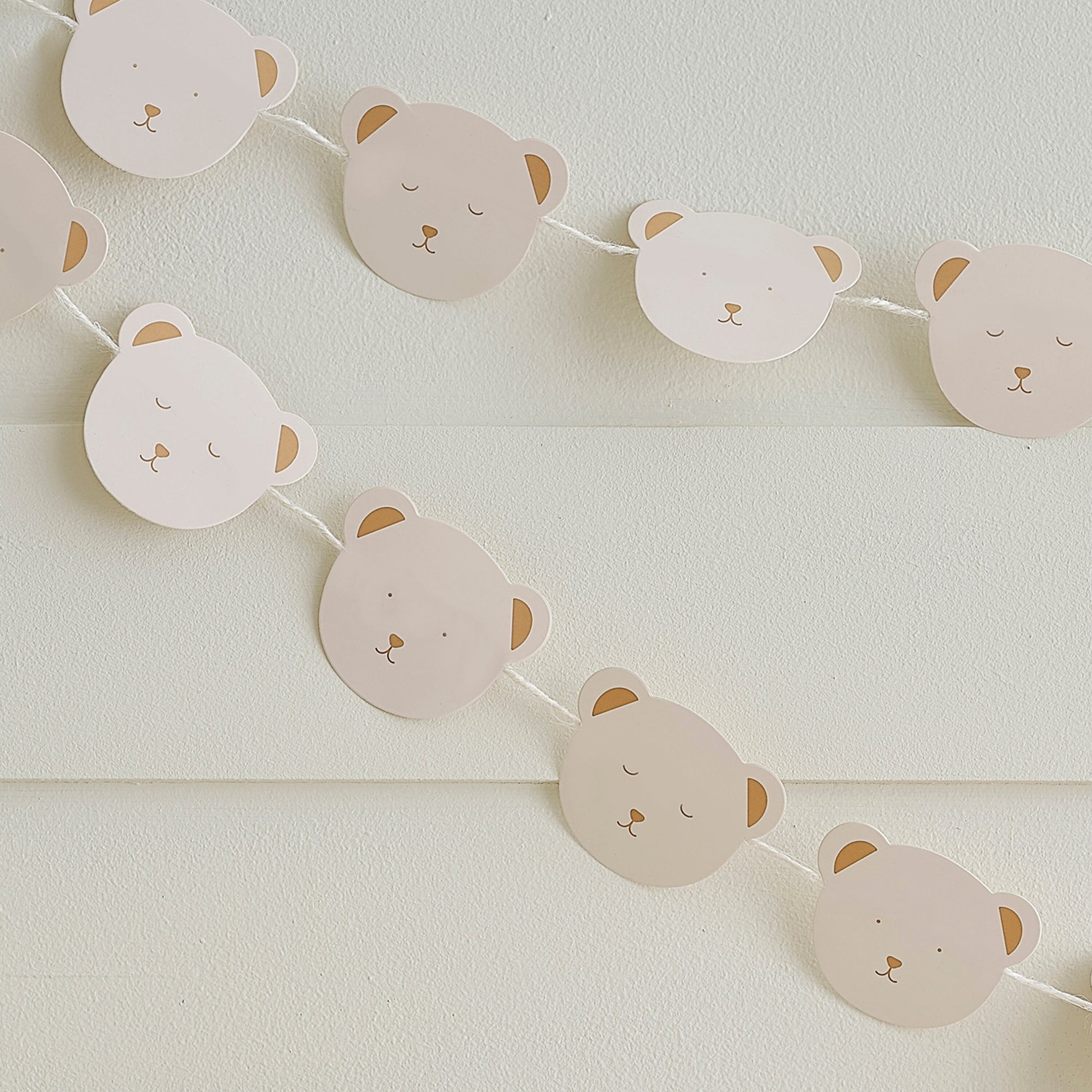 Complete your baby shower decor with this teddy bear baby shower bunting, shaped as teddy bear heads.
