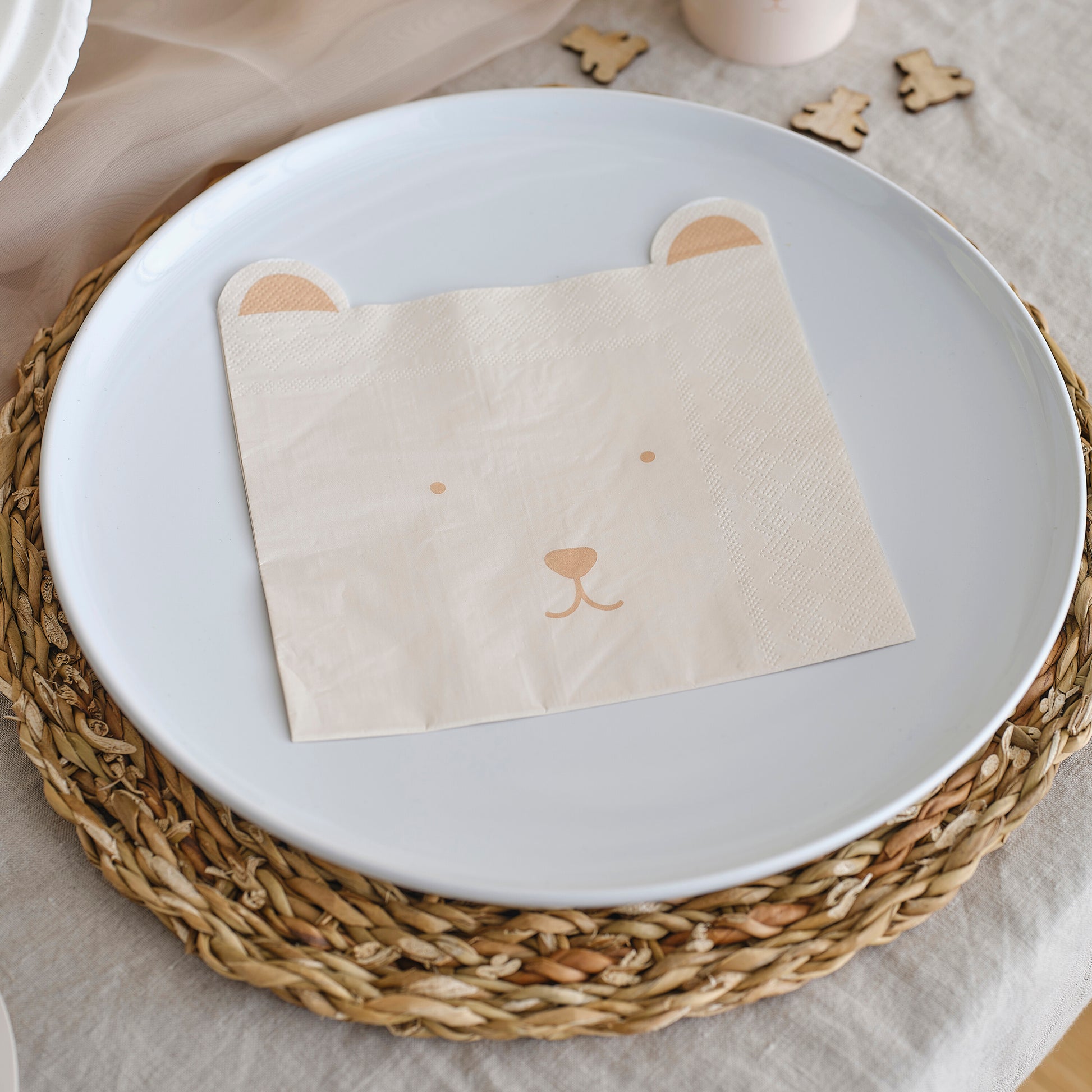 Add sweet touches to the table with these sweet teddy bear face baby shower paper napkins.