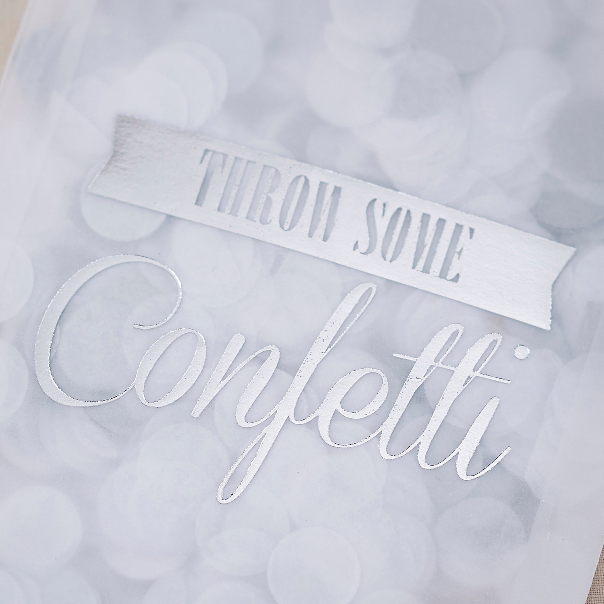 Confetti is presented in a lovely white envelope with silver foiled wording "Throw some confetti" each pack comes with 7g confetti, envelope size W 9.cm x H 11.5cm
