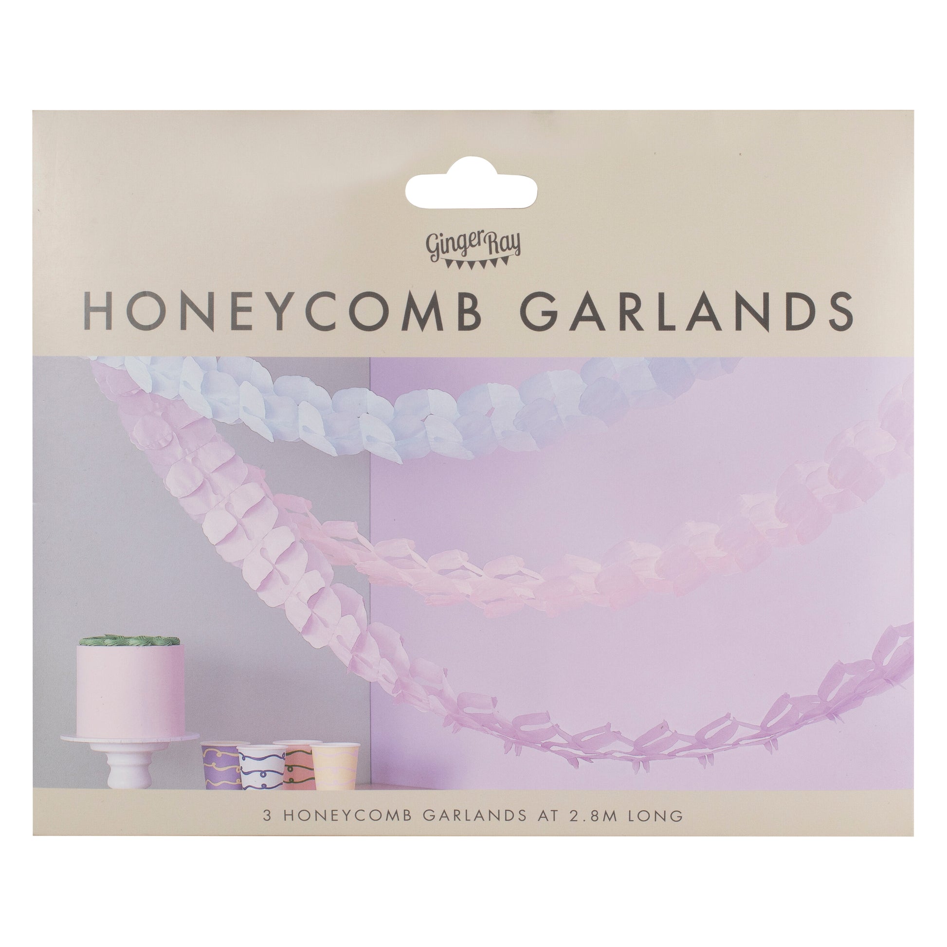 Each pack contains 3 honeycomb hanging garlands, measuring 2.8m.