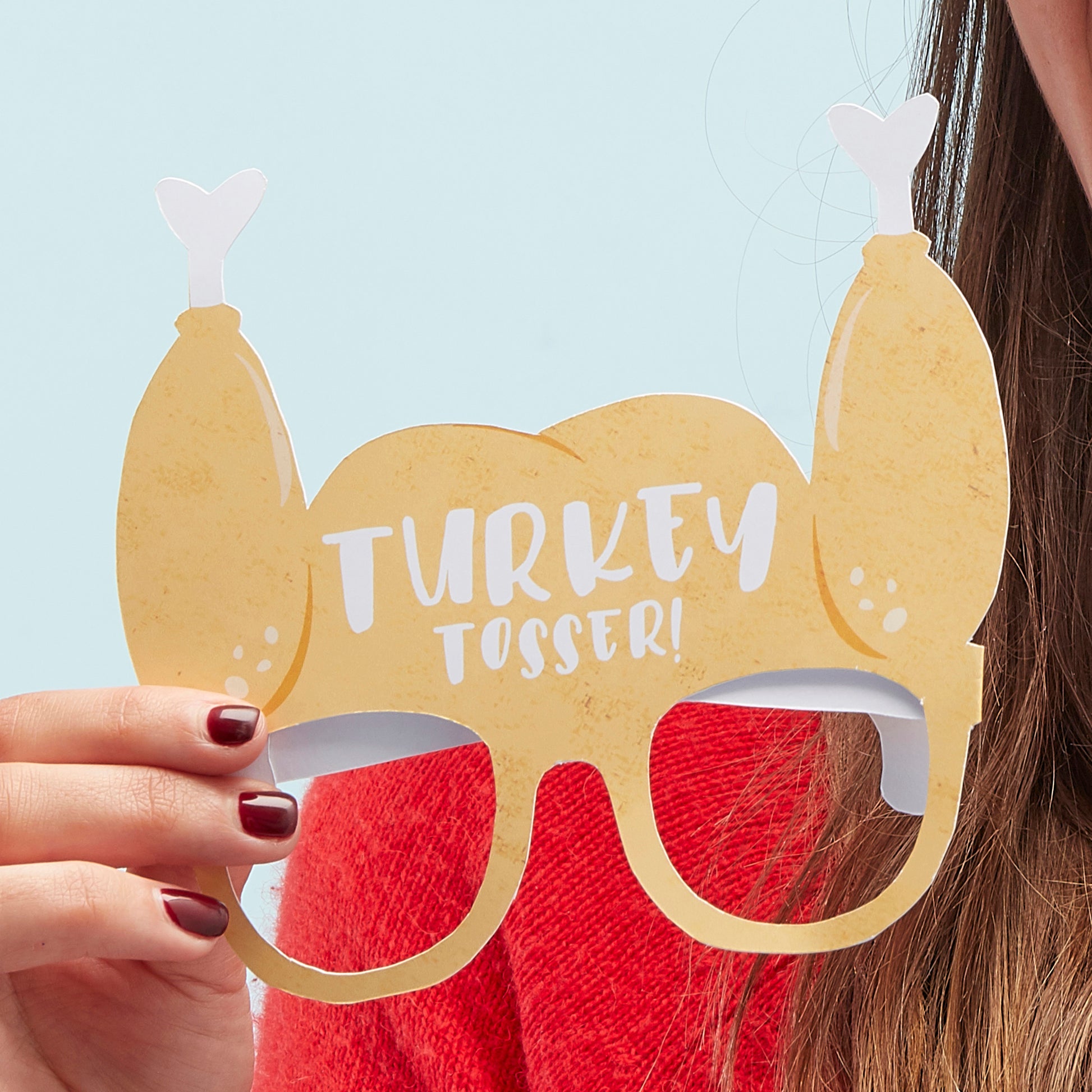 Hook the turkey or turkey glasses to your head as teams take it in turns to throw the sprout hoops and hook it around the turkey leg - Pair this with our winner winner turkey dinner for a fun games corner this festive season