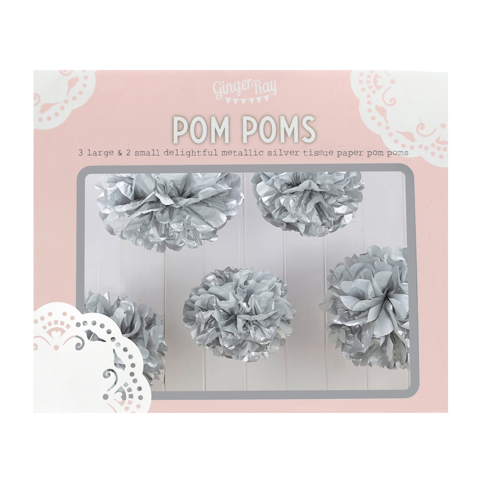 Vintage Lace - Tissue Paper Pom Poms - Silver