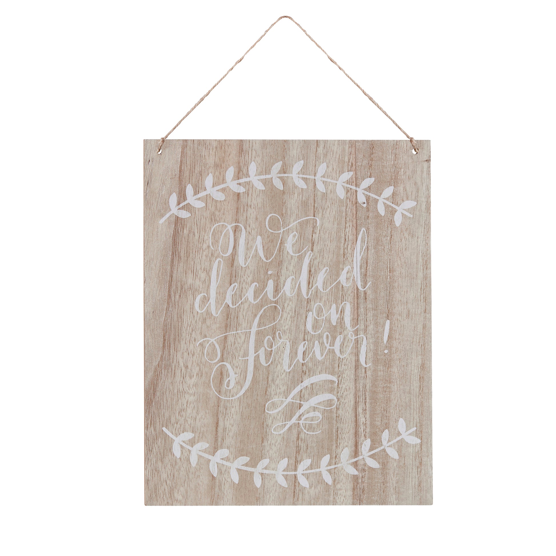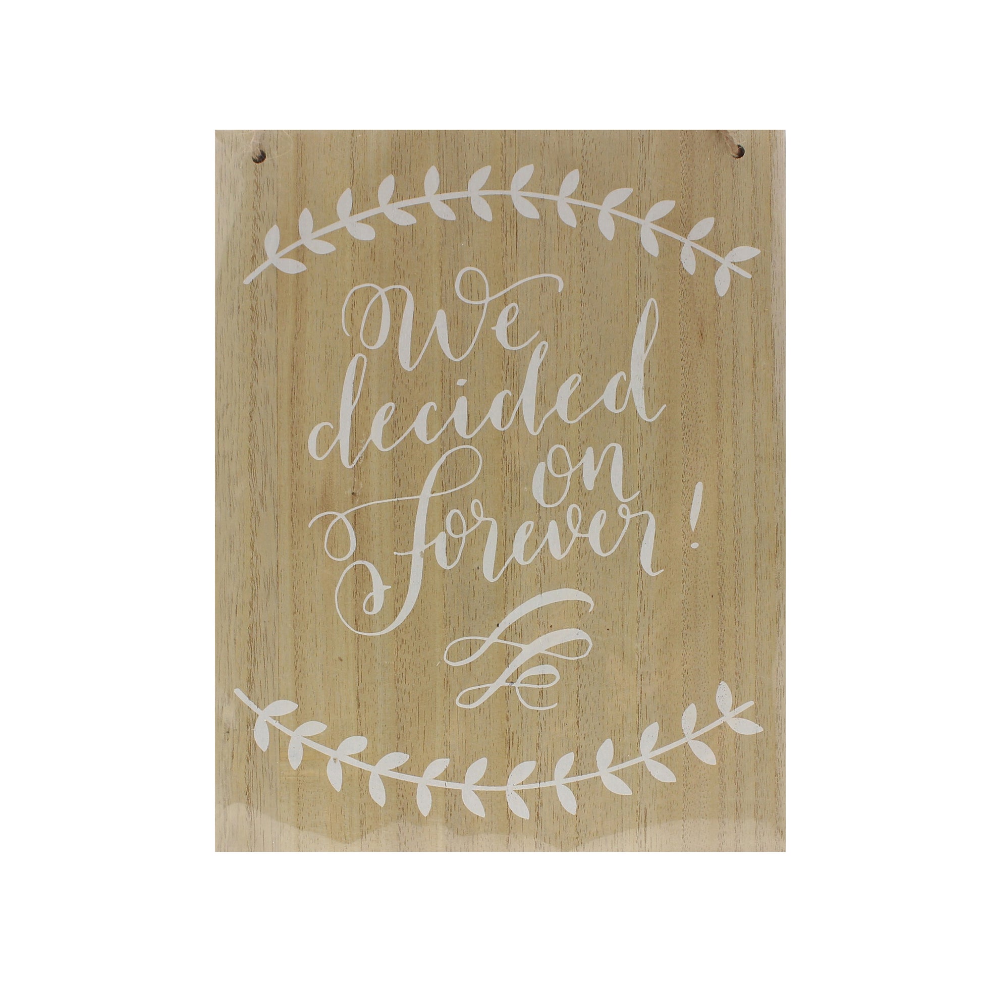 The vintage styled sign reads "We Decided On Forever". A gorgeous decorative message to share with your family and friends on your big day!