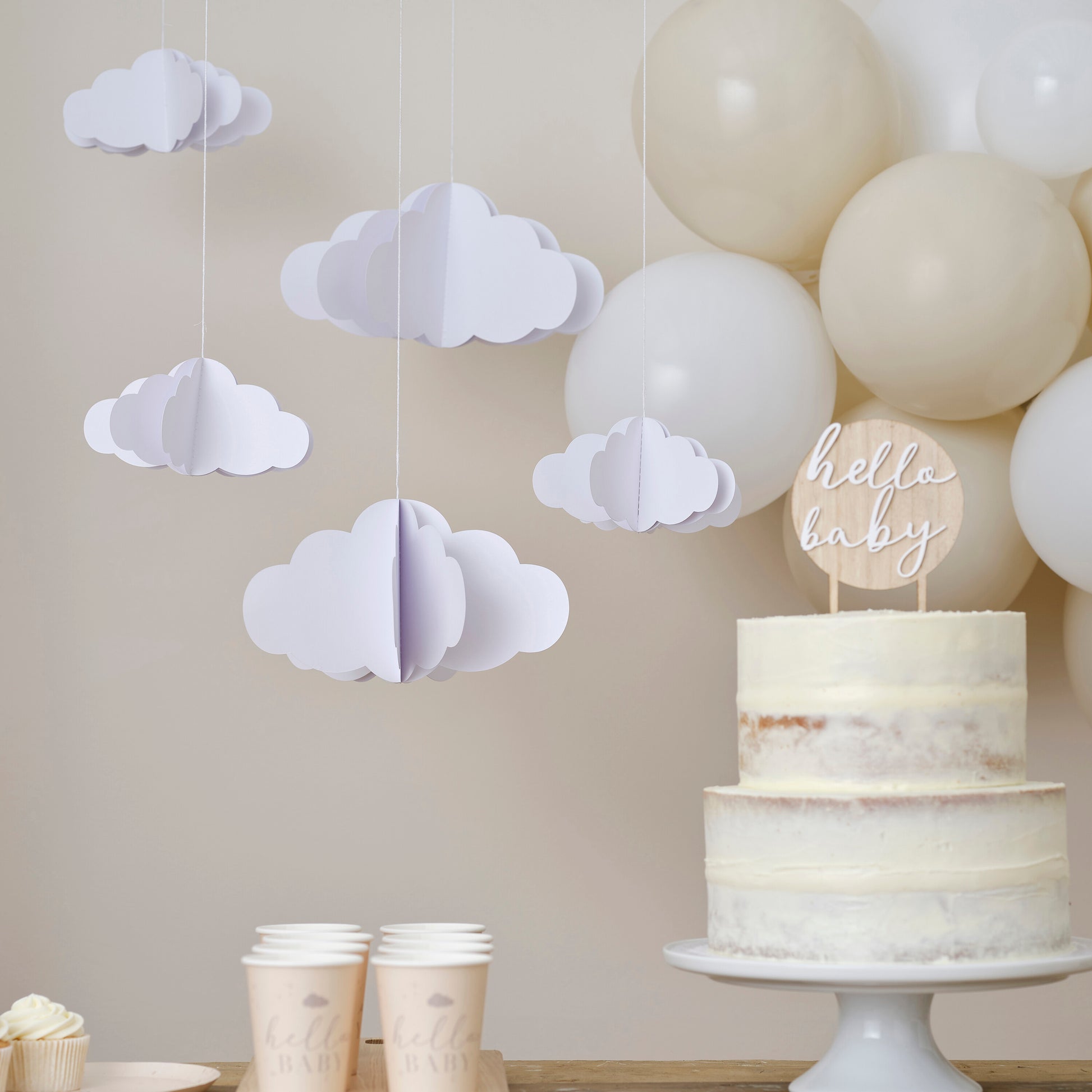 Create a gorgeous baby shower or hanging nursery decor with these beautiful 3D hanging cloud decorations.