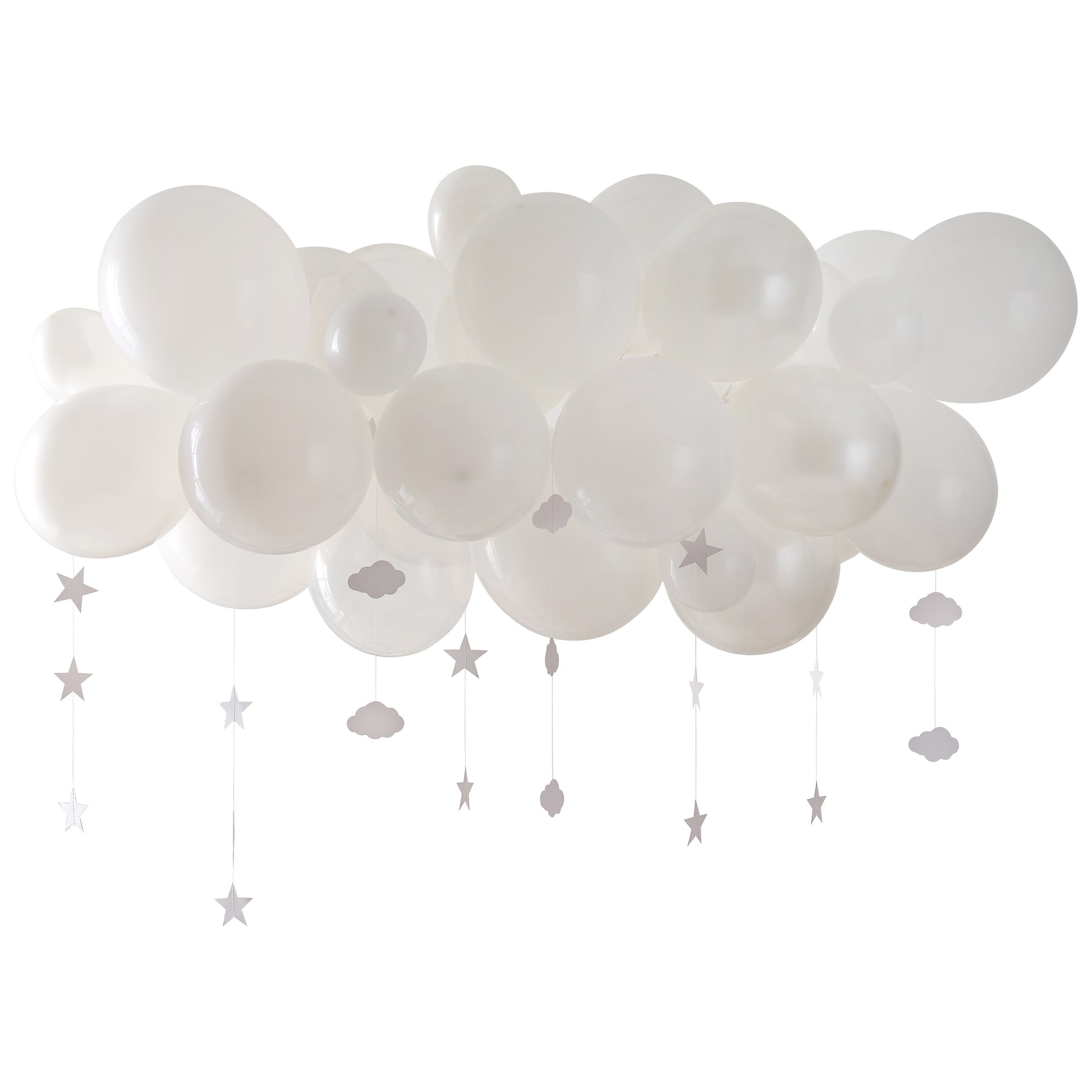 40 x white, clear and pearlised balloons with 7 x cloud and star balloon tails to hang.