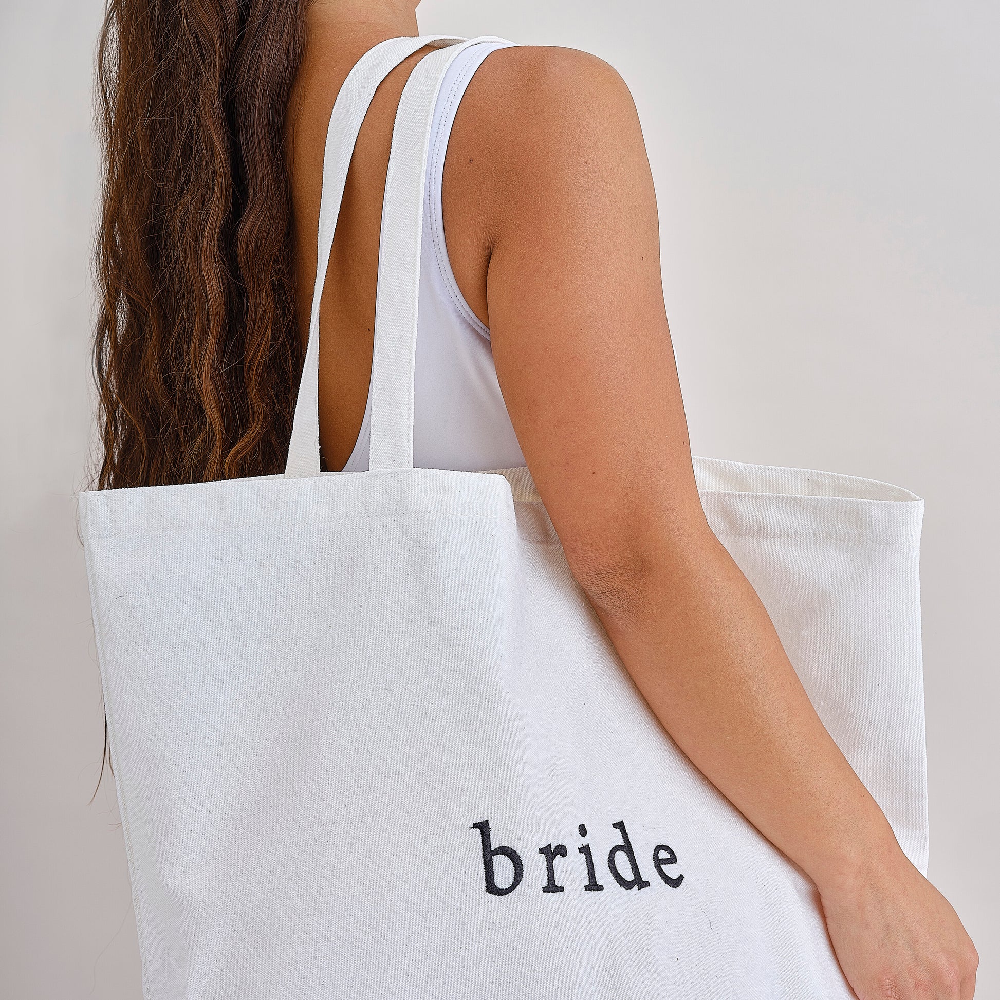 White Embroidered Bride Tote Bag
