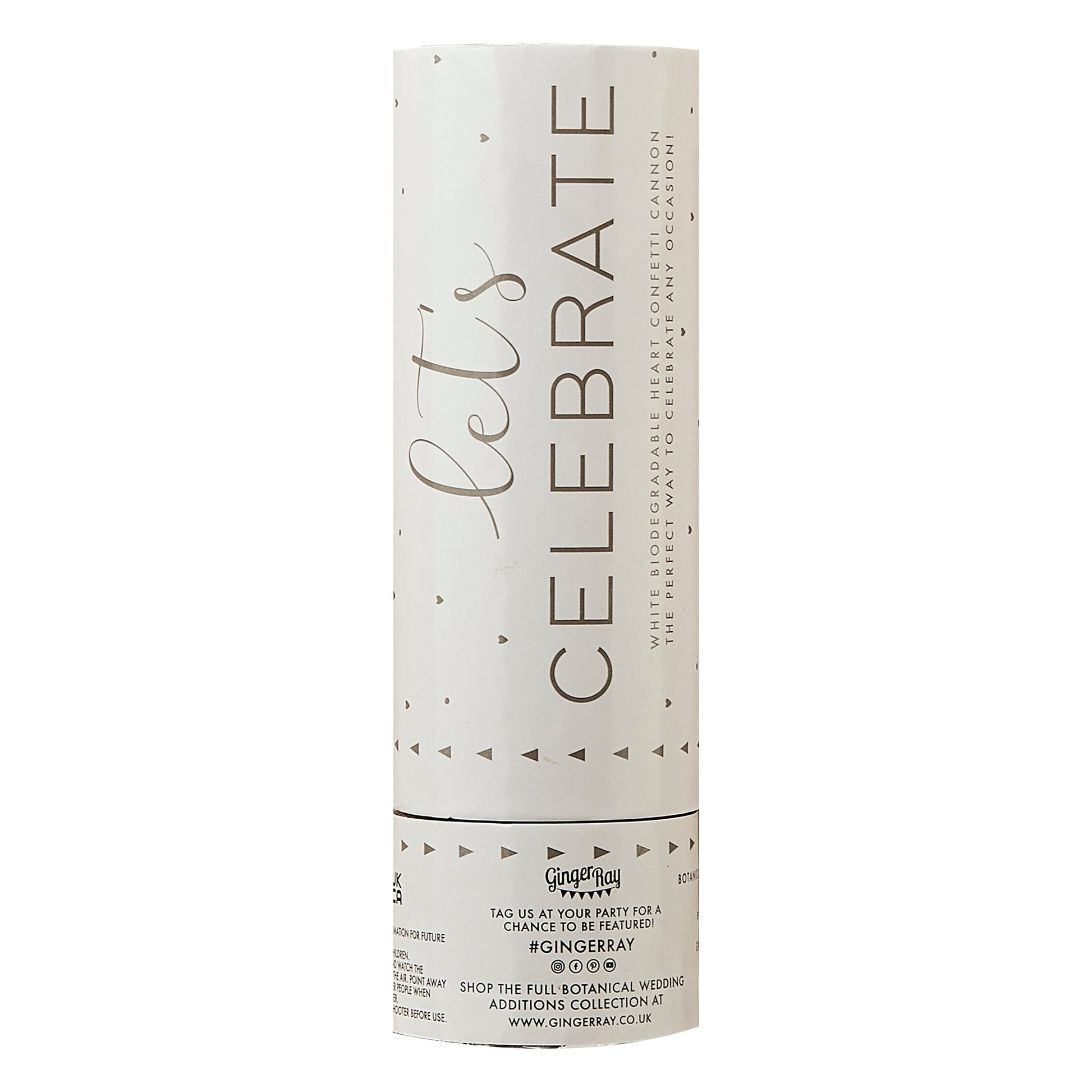 Surprise your guests or bride and groom with our sweet heart shaped confetti cannon. Shower the happy couple in confetti after they say 'I Do' or during their first dance. A loud cannon bang is followed by a cascade of white heart-shaped biodegradable confetti filling the room.