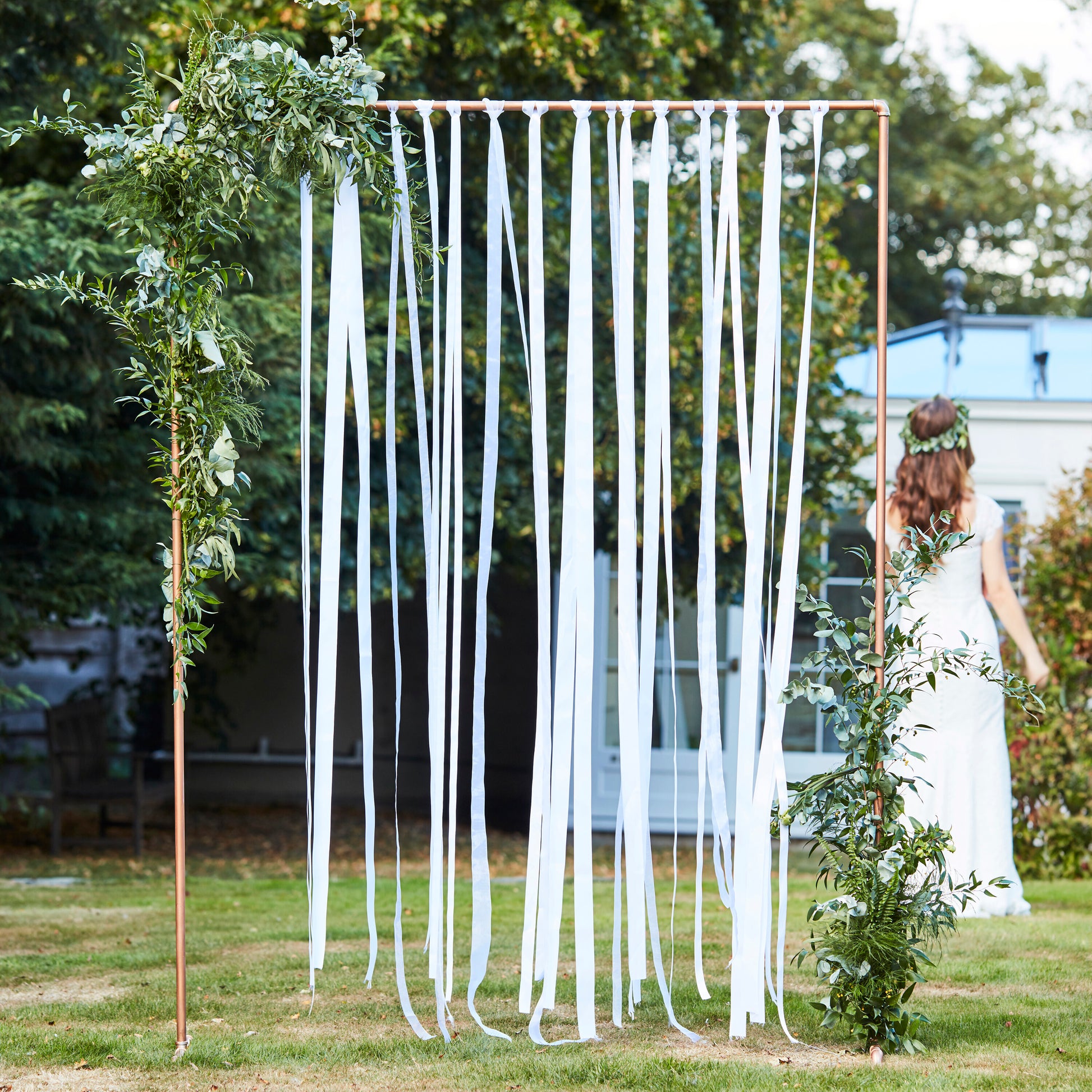 White Ribbon Hanging Wedding Backdrop