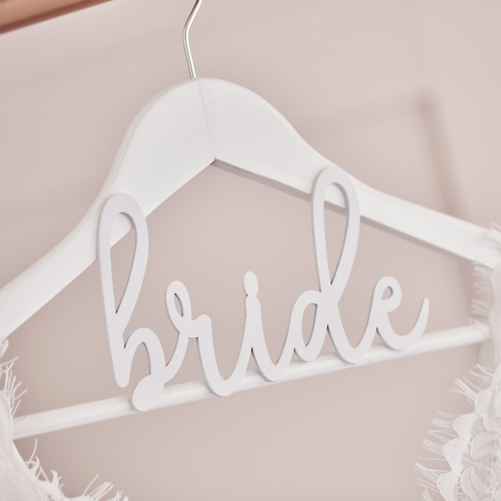1 x Wedding Hanger with 'Bride' measuring 8cm (H) x 16.7cm (W).