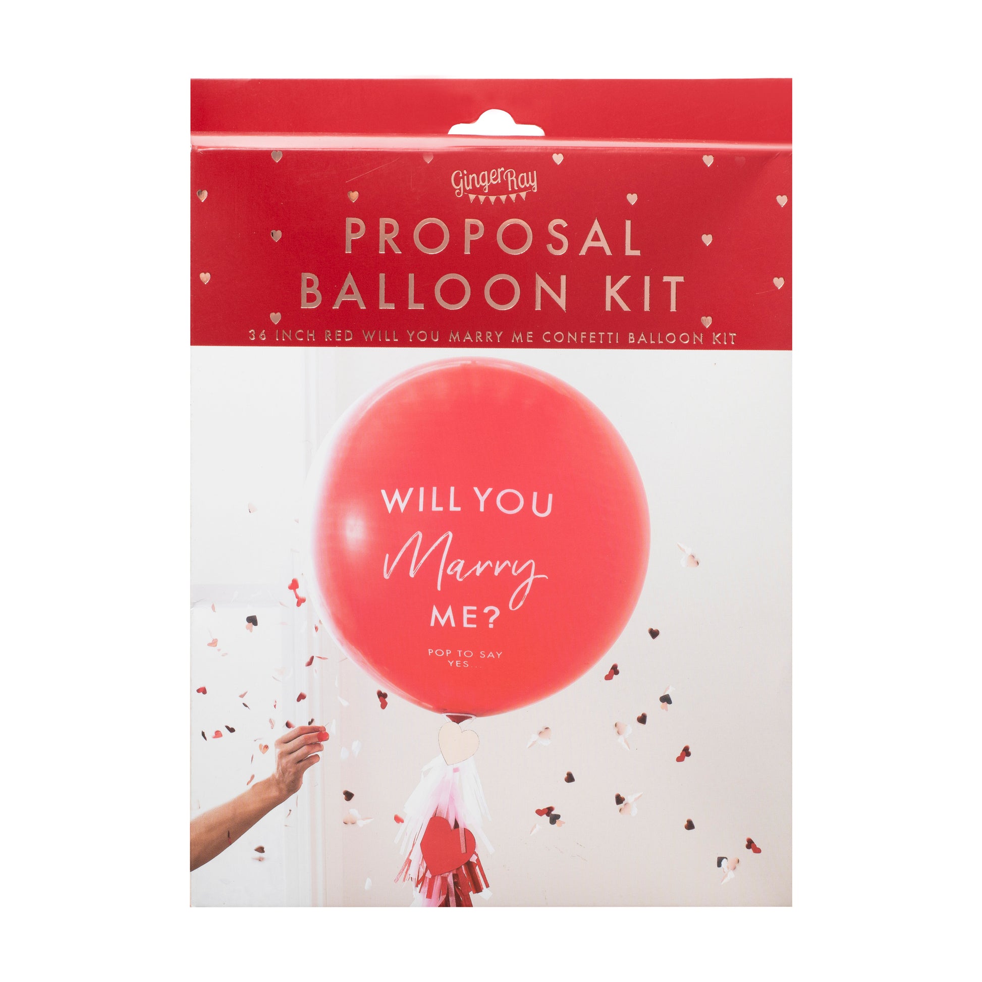 Each pack contains 1 x 36" balloon, scroll to personalise, tissue tassels,3 card hearts, 1 plastic cup and stick, glue dots and clear twine to make sure the balloon looks perfect for the big question!