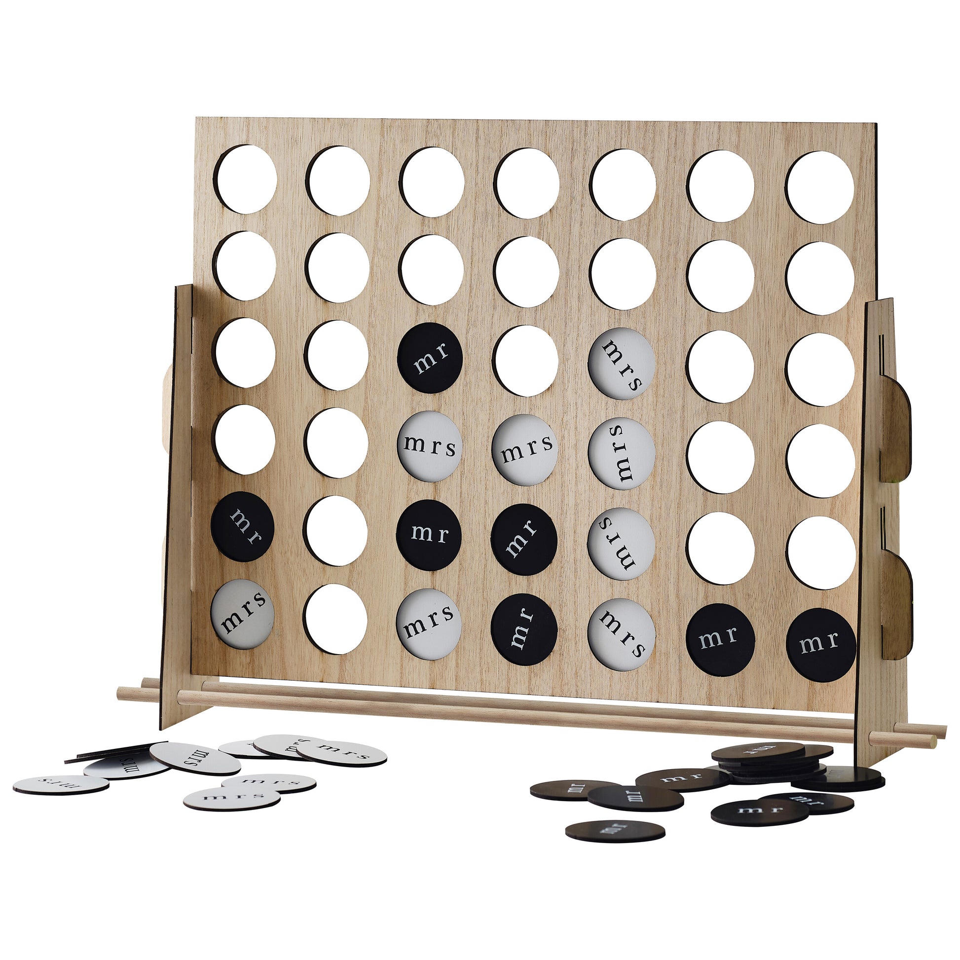 Bring some friendly competition to your celebration with our wooden "4 in a Row" game. With "Mr" and "Mrs" tokens, it's a relaxed way for everyone to join in the fun. Perfect for creating unforgettable moments!